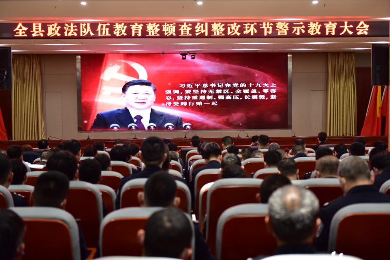 4月14日,鹿邑縣在縣文化中心第一會(huì)議室召開(kāi)全縣政法隊(duì)伍教育整頓查糾整改環(huán)節(jié)警示教育和政策宣講大會(huì)。縣委委常委、政法委書(shū)記張國(guó)慶主持會(huì)議并講話??h委常委、縣紀(jì)委書(shū)記、監(jiān)委主任金溪,縣政府副縣長(zhǎng)、縣公安局局長(zhǎng)任金瑞,縣人民法院院長(zhǎng)張述濤,縣人民檢察院檢察長(zhǎng)魯建軍出席會(huì)議。