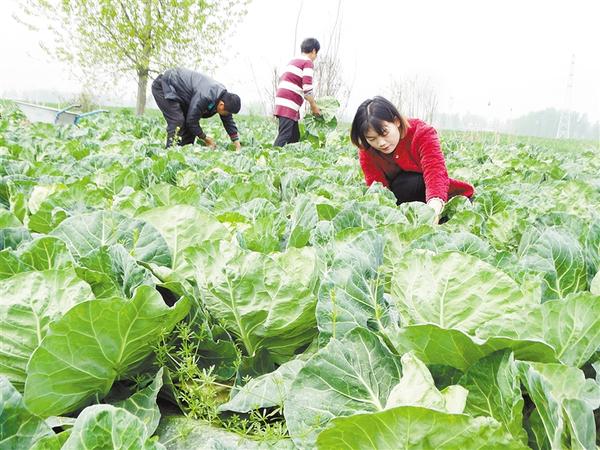 4月14日,沈丘縣周營鎮(zhèn)黃孟營村的一處生態(tài)蔬菜種植基地,村民正在收獲訂單甘藍(lán)。近年來,該鎮(zhèn)通過政策扶持,鼓勵(lì)群眾因地制宜規(guī)模有序發(fā)展特色蔬菜種植,采取“基地+合作社+農(nóng)戶”的種植模式,促進(jìn)農(nóng)業(yè)增效、農(nóng)民增收,助力鄉(xiāng)村振興。