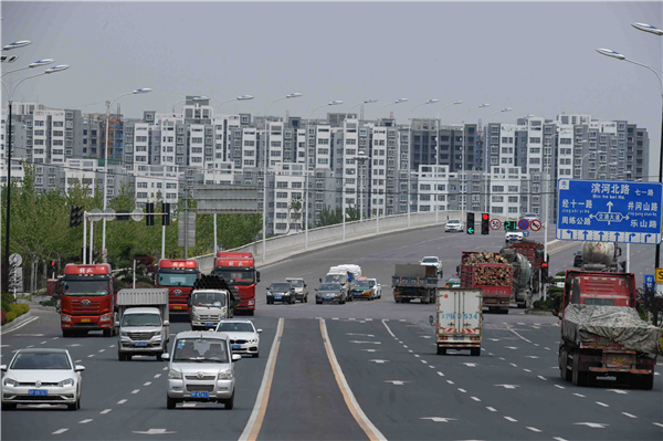 武盛大道南段沙潁河大橋邊高樓林立、車水馬龍充滿大城市氣息