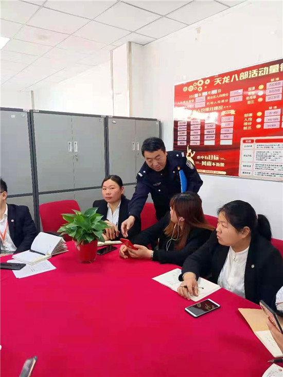 圖為王朝偉深入企業(yè)宣傳反電詐知識(shí)。