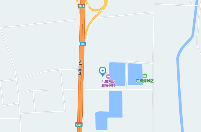 開著車、全家兜風(fēng)、免費登上大廣高速、到扶溝大新口下、向東一兩公里就能看到:東明湖度假村。