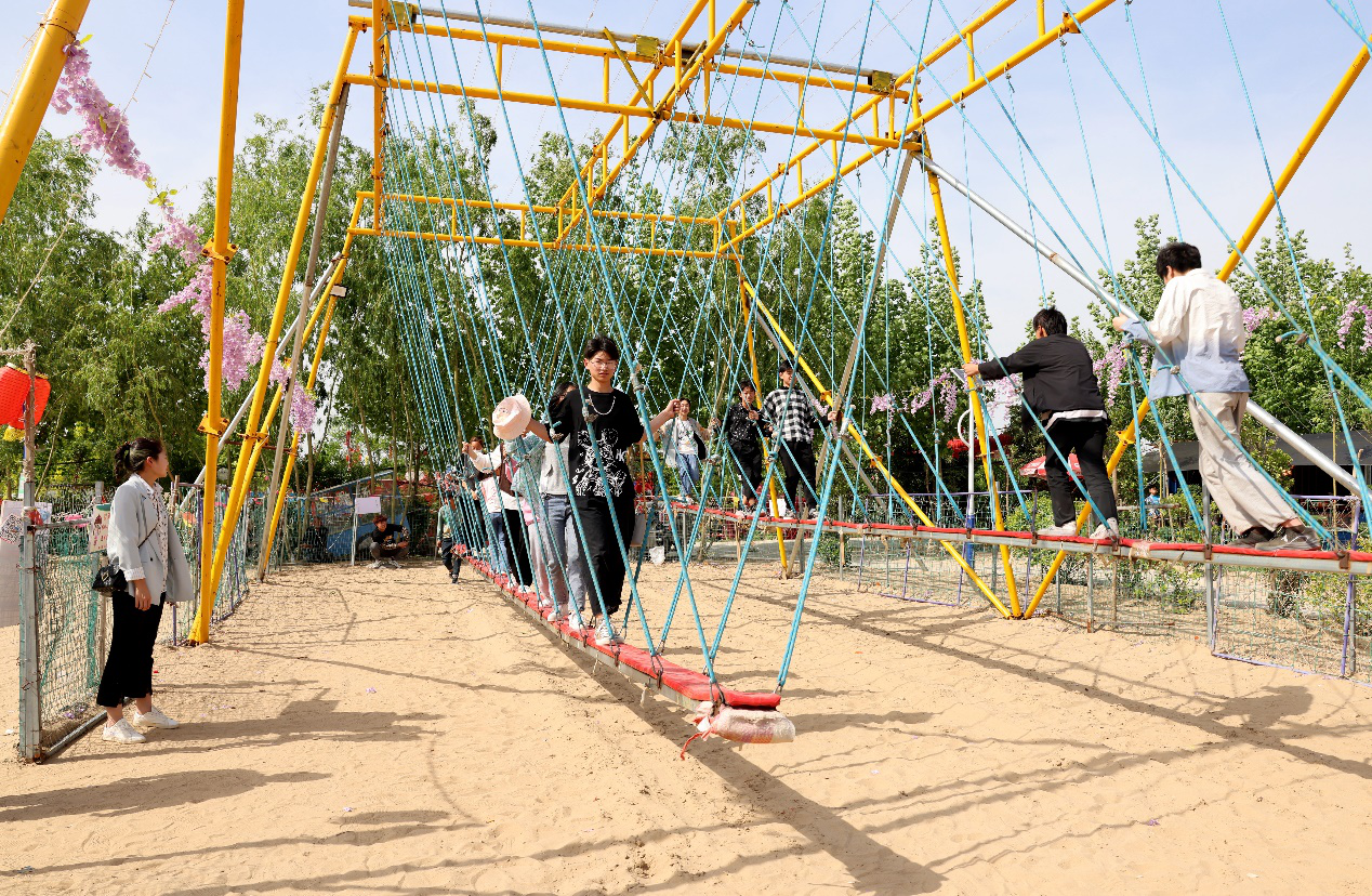 這個度假村建于2020年初,占地100多畝,擁有50多項娛樂休閑項目,包括蒙古包、農(nóng)家院等,整個游樂場處于沙灘之中,萬里平原之中的沙灘風(fēng)情更有韻味。來看看這里都有啥好玩的?