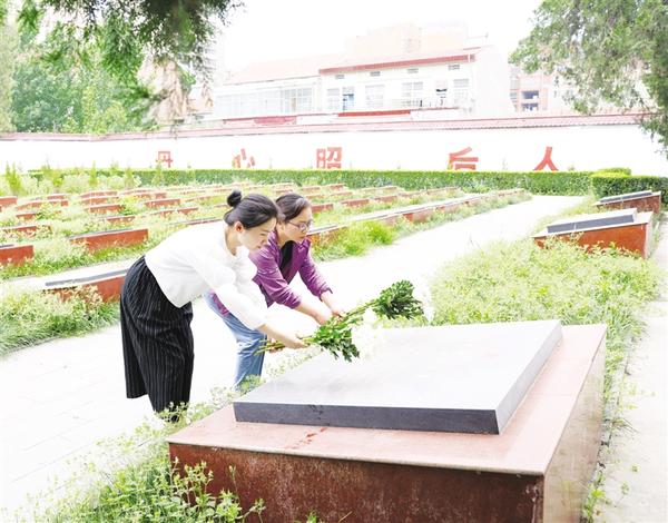 為表達(dá)對(duì)烈士的敬仰和懷念,記者和劉波濤烈士后人到鄲城烈士陵園,向劉波濤丁岐烈士合葬墓冢敬獻(xiàn)鮮花(如圖),聆聽劉波濤丁岐的傳奇故事,感受烈士濃濃的愛國(guó)情懷(相關(guān)文字報(bào)道及視頻,周口報(bào)業(yè)傳媒集團(tuán)將陸續(xù)推出)。①9