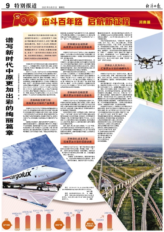 河南是我們黨開展革命活動與建立黨組織最早的省份之一,在黨的領(lǐng)導(dǎo)下,河南這片鐫刻著紅色印記的沃土,發(fā)生了翻天覆地的滄桑巨變。黨的十八大以來,河南堅定沿著習(xí)近平總書記指引的方向奮勇前進,把高質(zhì)量發(fā)展作為1億河南人民最根本的福祉,實現(xiàn)了一系列具有標志性意義的突破。站在新的歷史起點上,河南將奮力譜寫新時代中原更加出彩的絢麗篇章。