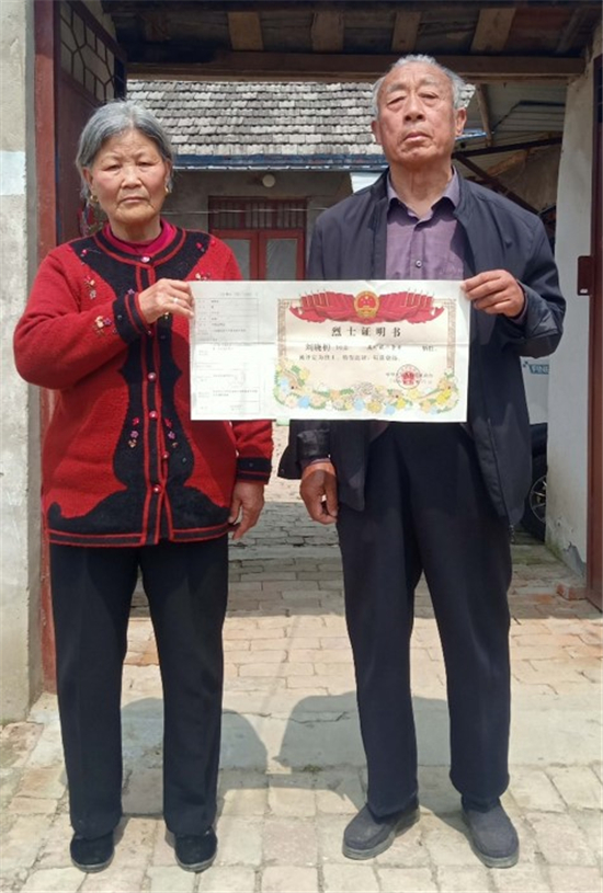劉仰生夫婦珍藏著父親劉曉初的烈士證明