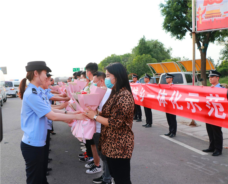 當(dāng)日19時(shí)許,示范區(qū)二級(jí)調(diào)研員丁有亮,示范區(qū)公安分局黨委書(shū)記、局長(zhǎng)何學(xué)民等同志前往迎接,歡迎勝利歸來(lái)的抓捕民警。當(dāng)抓捕組車輛駛出高速路口時(shí),現(xiàn)場(chǎng)響起熱烈的掌聲。丁有亮、何學(xué)民與參戰(zhàn)民警一一親切握手,對(duì)凱旋的民警表示歡迎和祝賀,民警代表將象征勝利和榮譽(yù)的鮮花獻(xiàn)給抓捕組民警。丁有亮表示向不辱使命、不畏艱險(xiǎn)、勇打勝仗的參戰(zhàn)民警表示慰問(wèn),并要求他們把握戰(zhàn)機(jī),繼續(xù)擴(kuò)大戰(zhàn)果,再接再厲,再立新功。何學(xué)民指出,示范區(qū)公安分局將乘勢(shì)而上、提振士氣,縱深開(kāi)展“迅雷”行動(dòng),出重拳打擊電信詐騙犯罪行為。