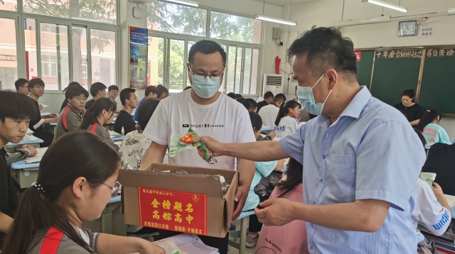 5月30日,團市委聯(lián)合愛心企業(yè)到周口市文昌中學(xué)開展“踐行‘周口精神’,助力高考”主題活動。