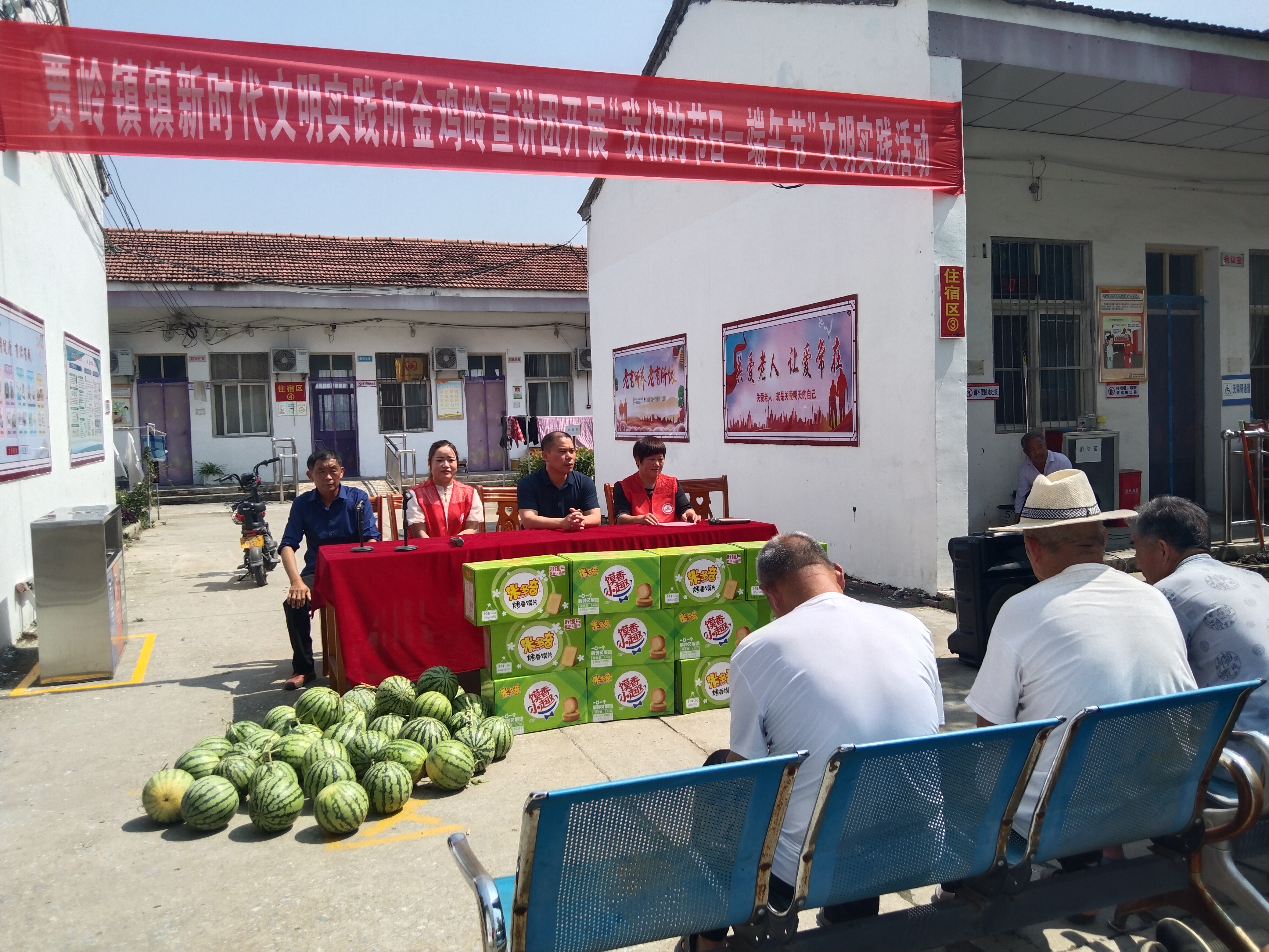 端午節(jié)將至,6月20日上午,項城市賈嶺鎮(zhèn)新時代文明實踐所金雞嶺宣講團志愿者走進該鎮(zhèn)敬老院,為老人們送去粽子、西瓜、糕點等愛心物品,并為老人們表演大鼓書《百善孝為先》等文藝節(jié)目,以此表達對老年人的關(guān)愛之情。