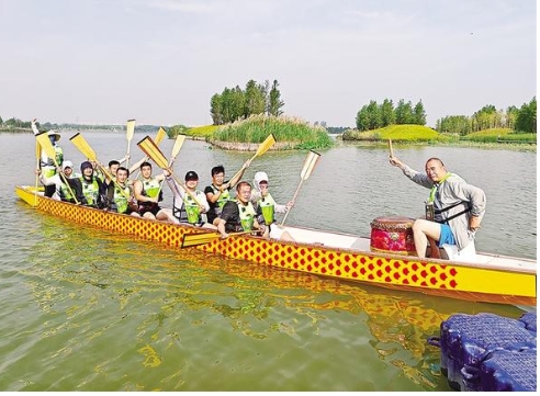 “咚咚咚……”近日,市城鄉(xiāng)一體化示范區(qū)引黃調(diào)蓄湖水面上水花翻涌,激昂的鼓點破空而來。2025“國緣杯”周口市第十屆中華龍舟賽的參賽隊伍正在進行最后的沖刺訓(xùn)練。