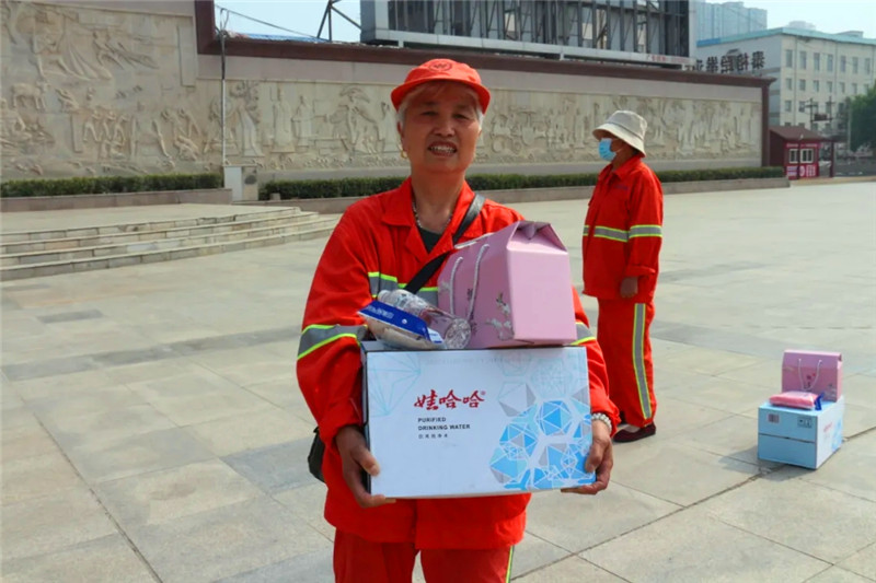 此次活動,中原眾恒集團為100余名環(huán)衛(wèi)工人代表送去精心準備的粽子禮盒、礦泉水、毛巾、香皂等慰問品,并向在高溫酷暑下辛勞工作的一線環(huán)衛(wèi)工人致敬,感謝他們?yōu)橹芸诔鞘协h(huán)境衛(wèi)生所做出的貢獻。