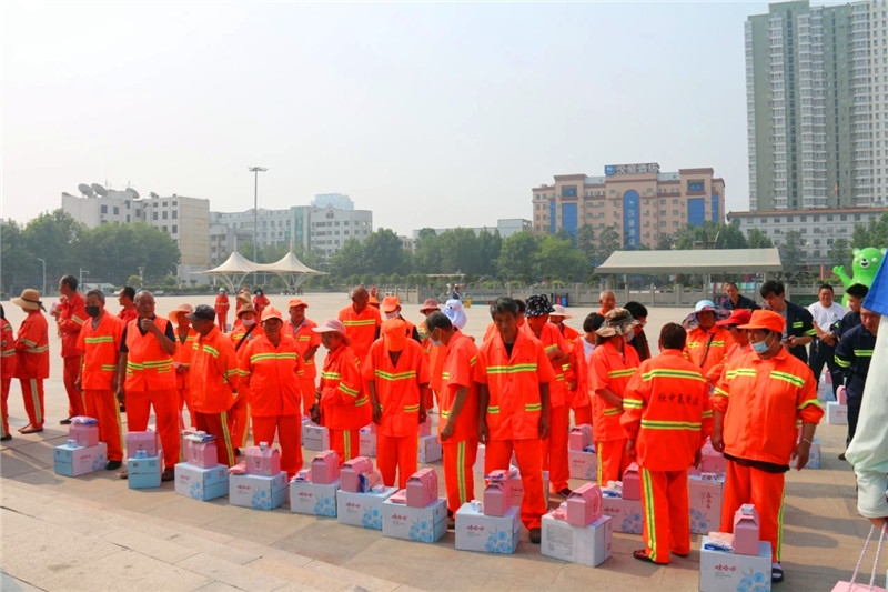 在端午節(jié)來臨之際,為讓一線環(huán)衛(wèi)工人過上一個溫馨的節(jié)日,6月11日上午,中原眾恒集團在川匯區(qū)五一廣場舉行了“點滴愛心·粽情端午——中原眾恒集團致敬城市美容師”慰問活動,踐行為群眾辦實事、做好事的初心,為忙碌在大街小巷的環(huán)衛(wèi)工人們送上節(jié)日問候和暖心禮物。