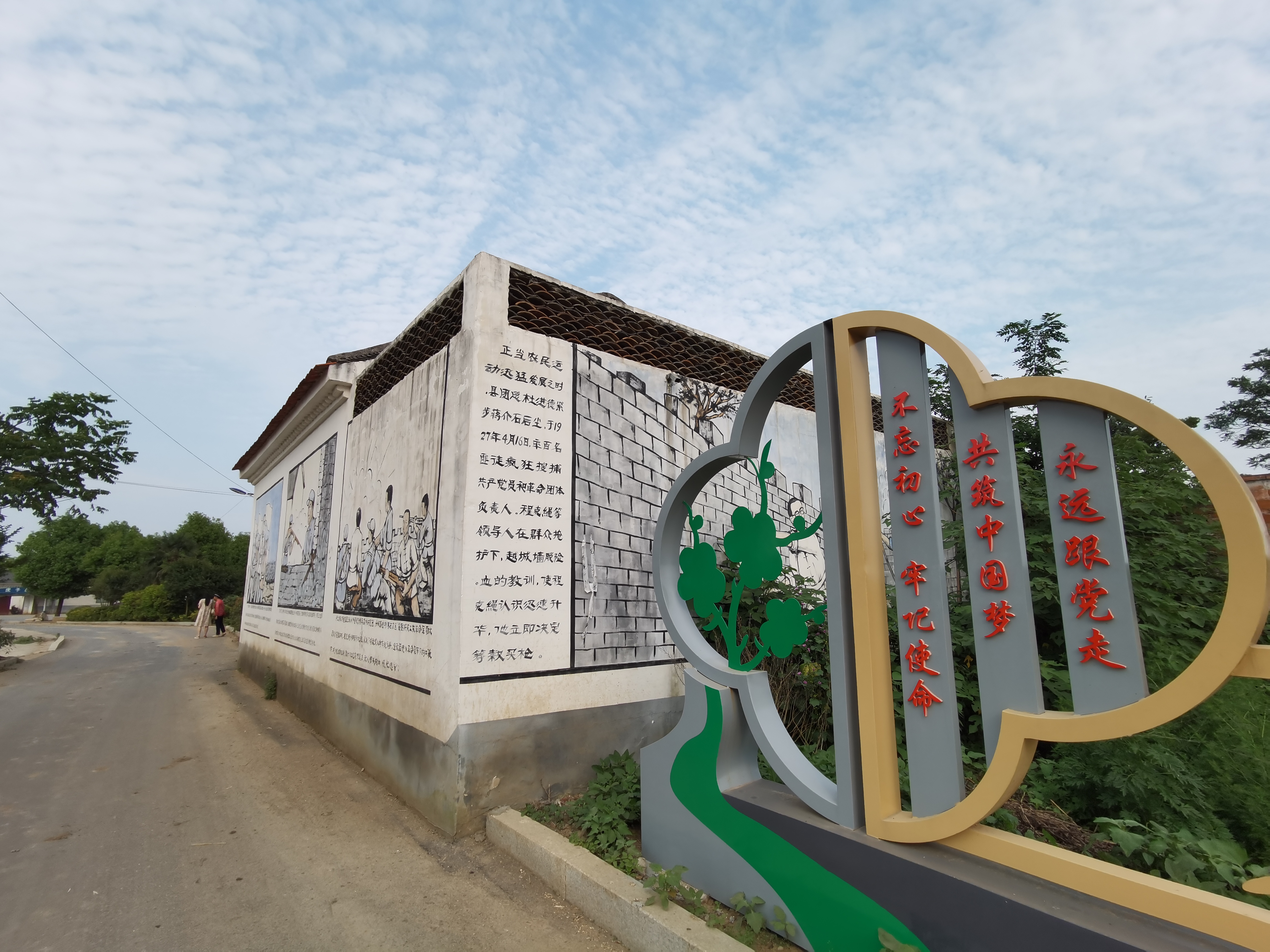 時(shí)空轉(zhuǎn)換。程克繩等革命先烈戰(zhàn)斗過(guò)的紅色熱土,已經(jīng)發(fā)生了翻天覆地的變化。行走在程坡村,只見(jiàn)硬化過(guò)的村道平坦、干凈,道路兩邊綠樹(shù)成蔭、鮮花綻放,農(nóng)房整修一新,墻上彩繪再現(xiàn)了程克繩光輝事跡的故事場(chǎng)景,村里三三兩兩的老人,聚在樹(shù)蔭下拉家?!?/p>