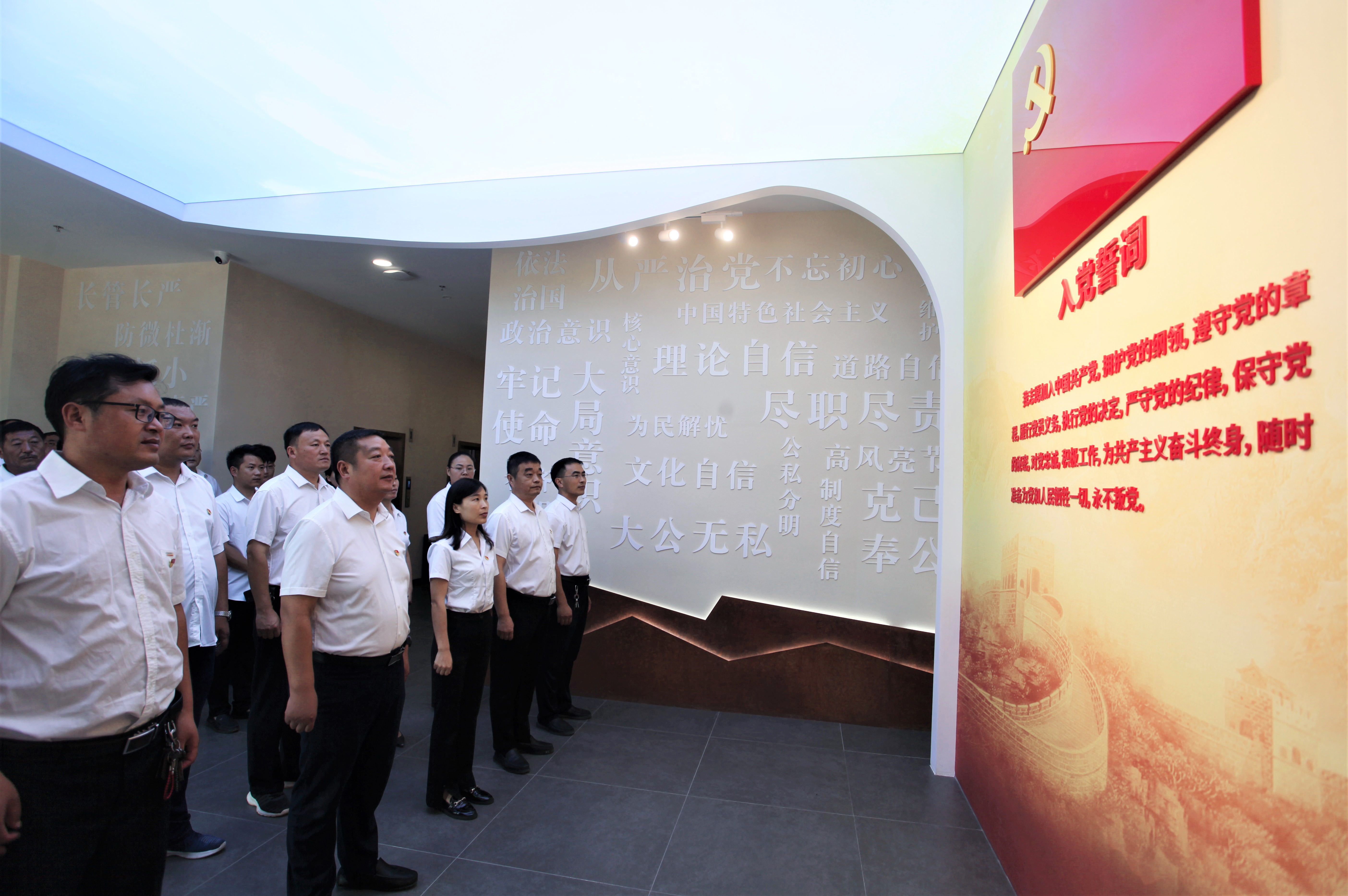 在入黨誓詞展示墻前,全體黨員干部胸前佩戴黨徽,神情莊重、精神飽滿(mǎn),高舉右拳,重溫入黨誓詞,回顧初心使命。鏗鏘有力的誓言響徹現(xiàn)場(chǎng)。③8