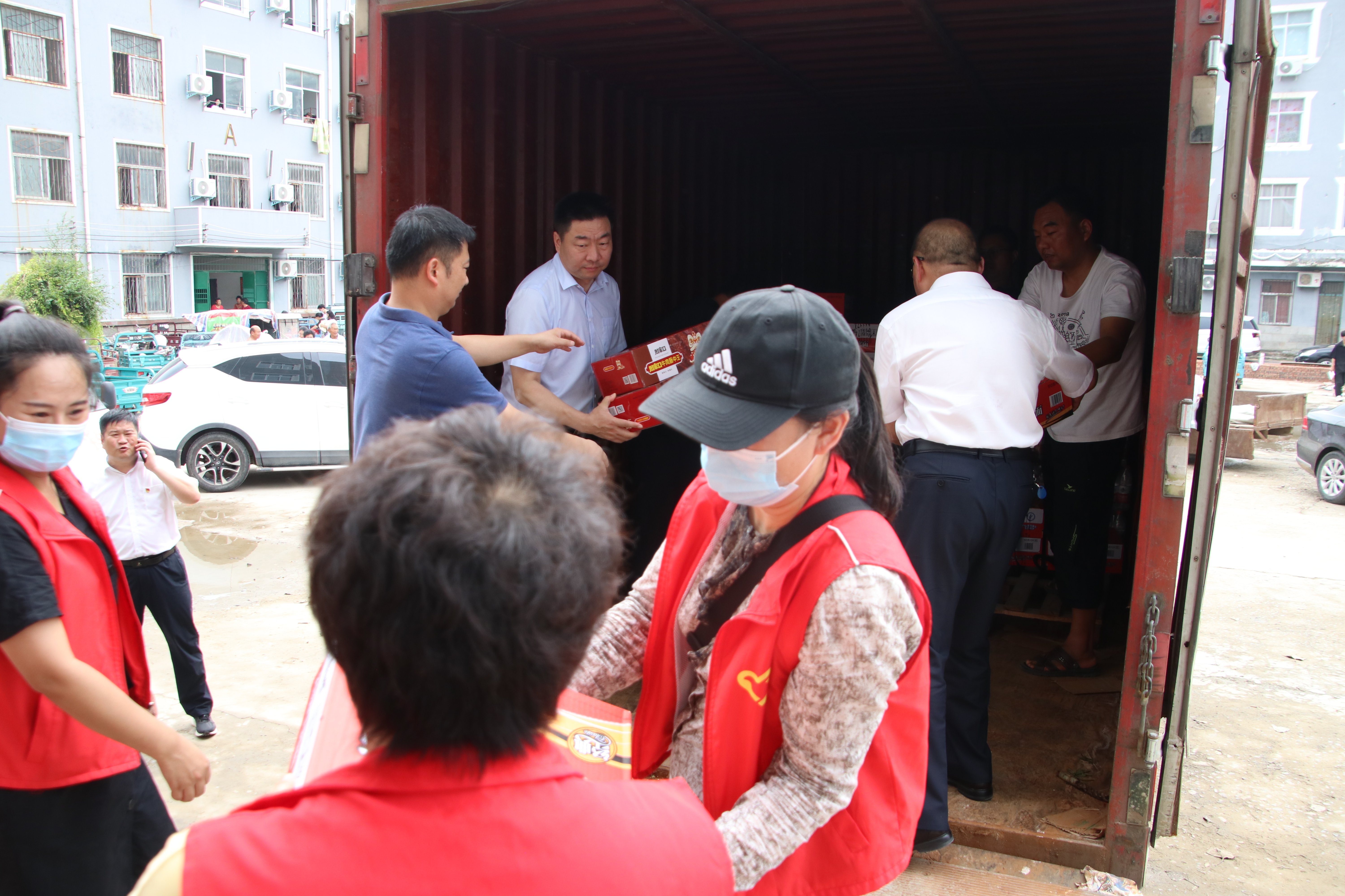 7月22日,周口市農(nóng)信辦黨組書記盛毅一行赴扶溝二高安置點送去200箱飲用水、100箱方便面、100箱火腿腸、50箱面包等物資,看望慰問安置點工作人員和因災(zāi)轉(zhuǎn)移的群眾。(李鳳霞 林根深攝)