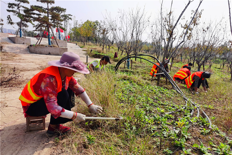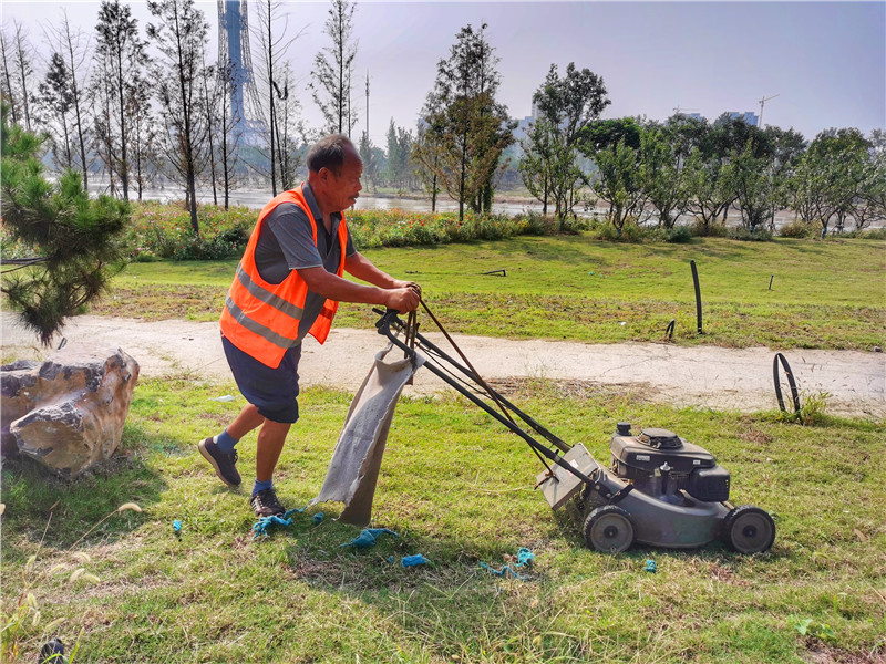 國慶節(jié)期間,在廣大人民群眾享受假期的時(shí)候,周口市城區(qū)沙潁河公園內(nèi),一群身著紅馬甲的園林綠化工人,不畏炎炎烈日,在公園綠化帶忙碌著修整綠植、草坪,用辛勤的汗水維護(hù)城市的美麗。②9