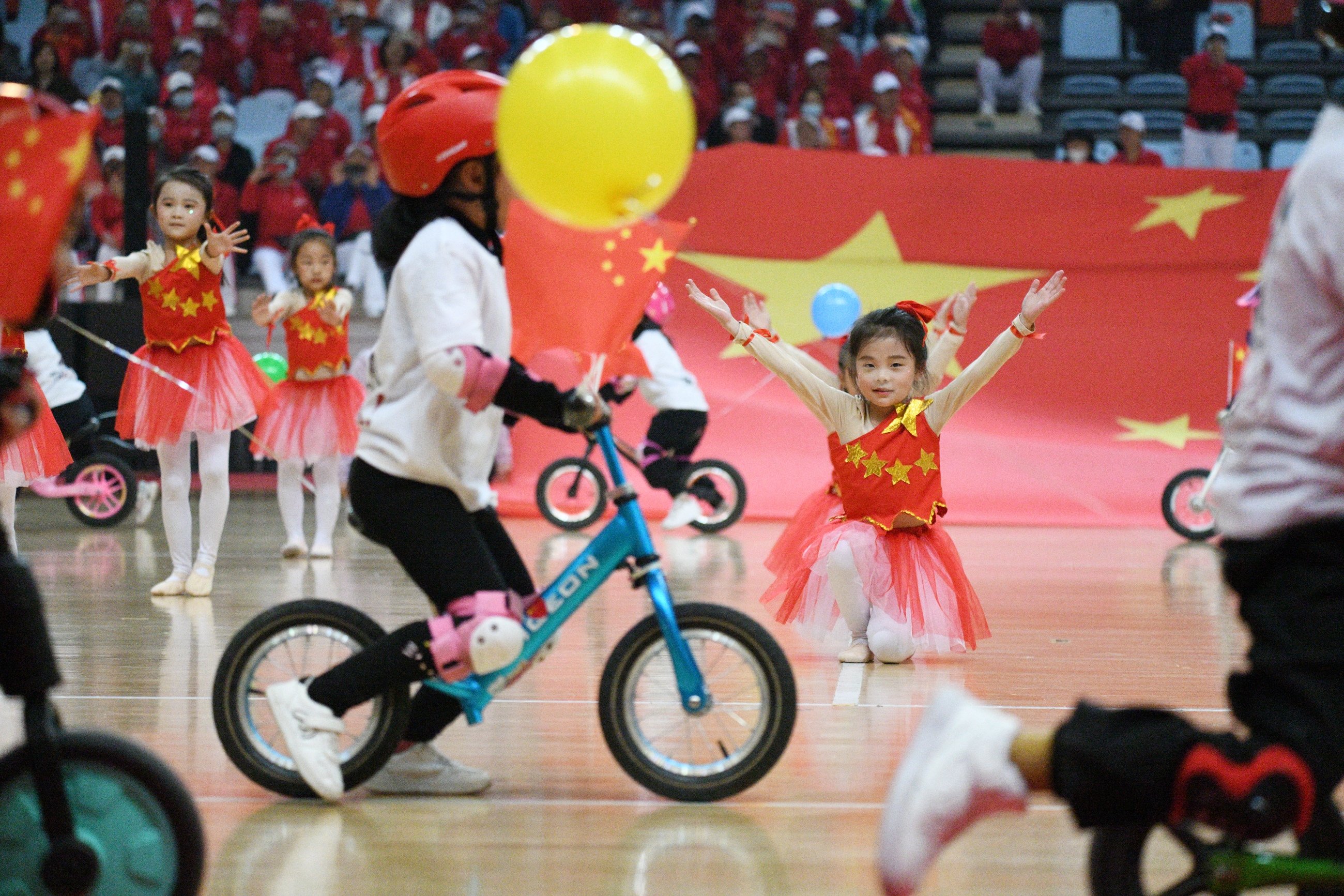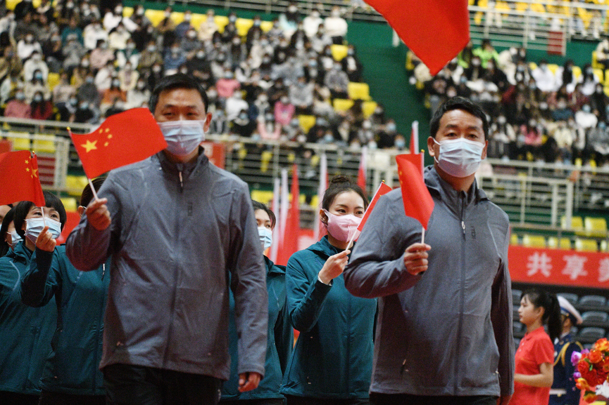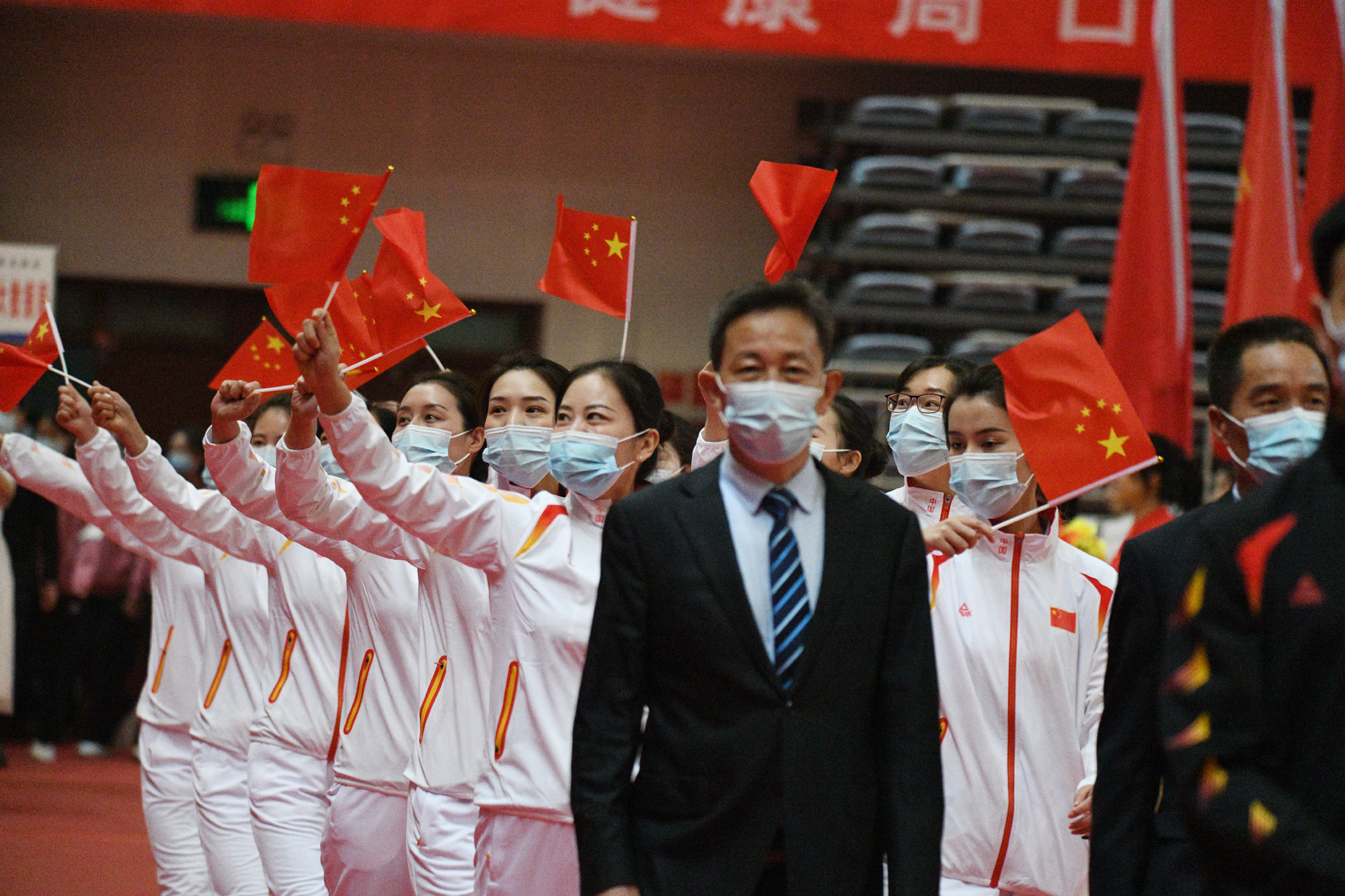 女運(yùn)動(dòng)員們展示巾幗不讓須眉的奮進(jìn)精神