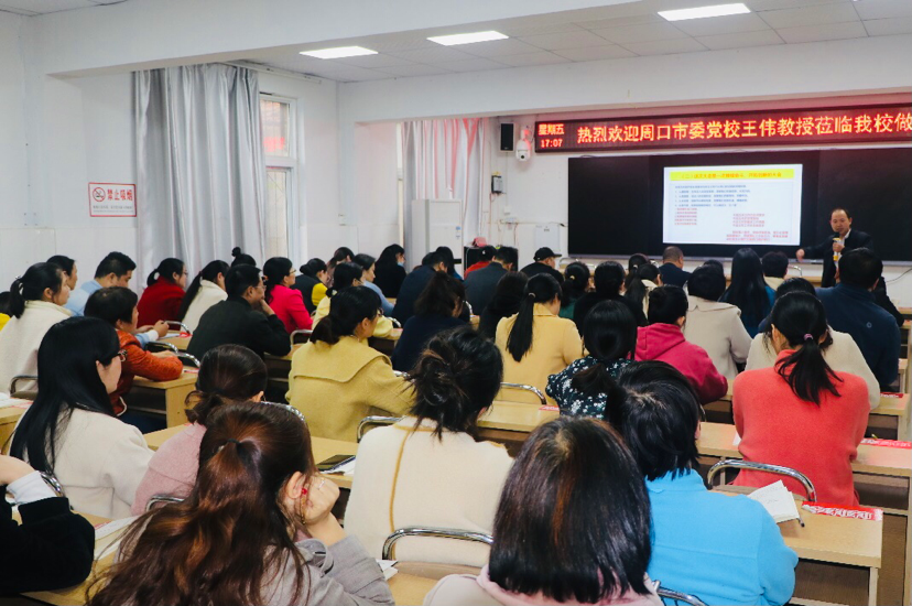 宣講會上,市委黨校宣講團講師王偉以“深入學習貫徹市五次黨代會精神、開啟全面建設社會主義現(xiàn)代化周口新征程”為主題,從充分認識市五次黨代會的重大意義、準確把握市五次黨代會的精神要義、全面落實市五次黨代會的目標任務三方面,詳盡解讀了市五次黨代會主旨報告的精神實質(zhì)和豐富內(nèi)涵。整場報告脈絡清晰、論述深刻、內(nèi)容豐富,既有深入淺出的理論闡述,又有結合我市發(fā)展的實例分析,更有教育實踐層面的對策思考,為該校教職工深入、完整、系統(tǒng)地領會市五次黨代會精神,有力推進貫徹落實黨代會精神提供了一把“金鑰匙”。