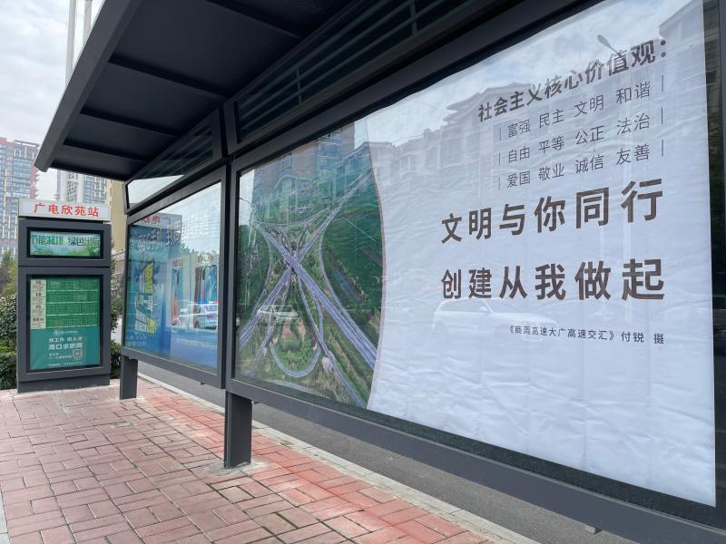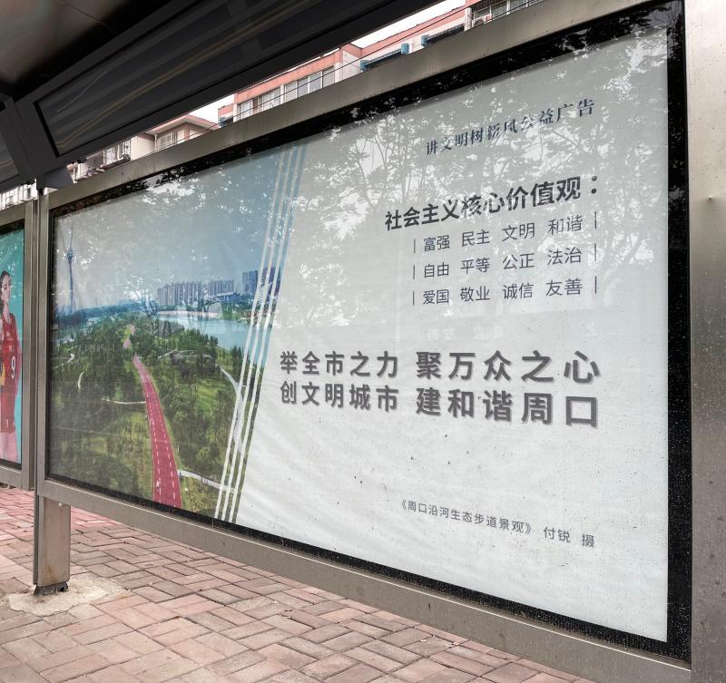 周口市公交總公司總經(jīng)理助理朱懷彬表示,為確保文明標語能讓市民抬眼可見、駐足即觀,目前,我市中心城區(qū)公交候車臺的公益廣告牌投放覆蓋率已超過50%?!盁ㄈ灰恍碌墓徽九_,既扮靚了周口的城市面貌,提升了市民的出行體驗,又潛移默化地把社會主義核心價值觀根植于市民內(nèi)心。”朱懷彬說。②10