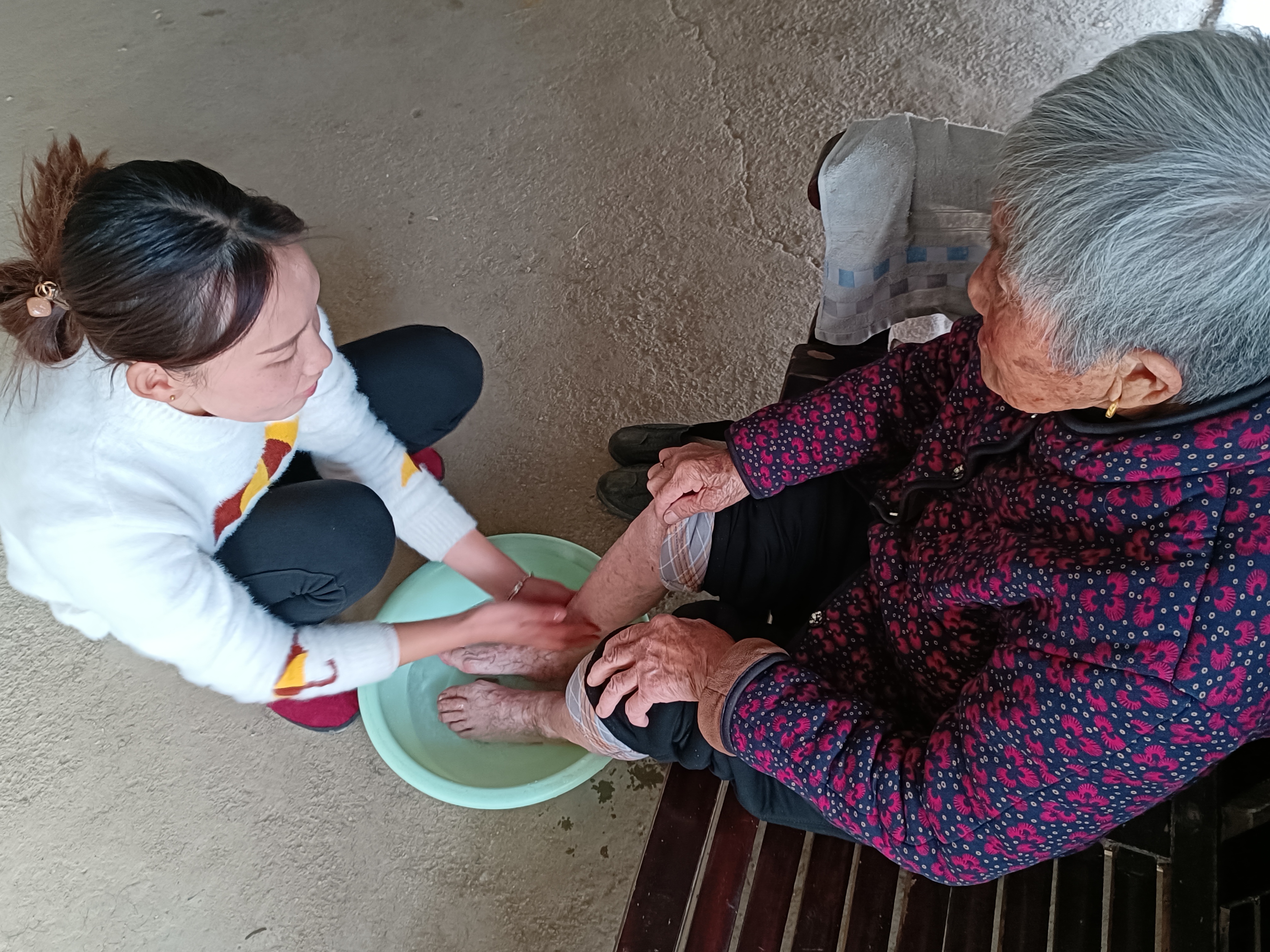 楊秀真老人有三子三女,她跟著小兒子過。今年8月份,一向身體硬朗的楊秀真出現(xiàn)了行動不便的癥狀,被送往醫(yī)院后檢查出腦梗。確診后,一輩子要強(qiáng)的楊秀真情緒低落,起初張書艷以為婆婆只是因為生病心情不好。一次楊秀真洗過腳后,看著低頭給她擦腳的張書艷,說出心里話:“閨女,我成拖累了……”