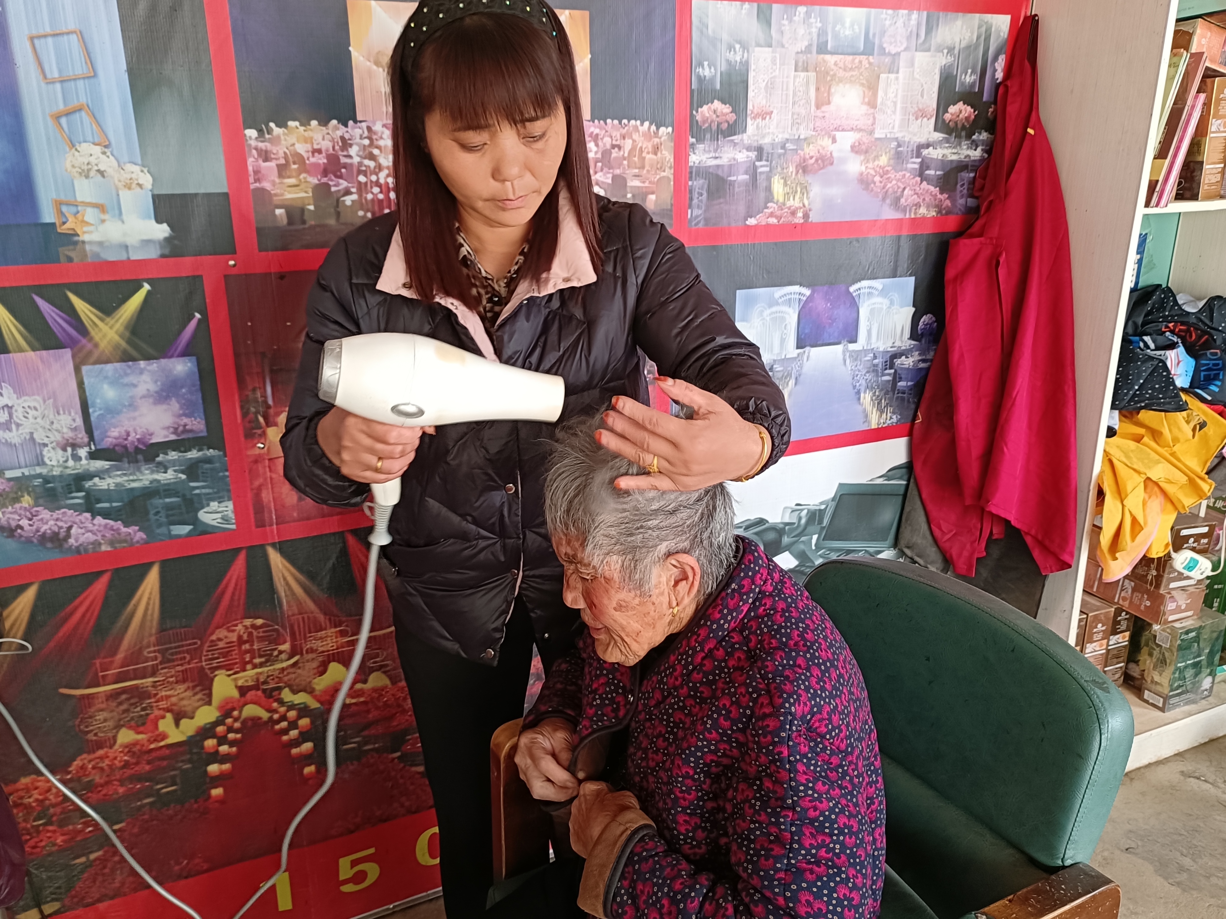 11月3日,記者接到熱線電話,說周口市城鄉(xiāng)一體化示范區(qū)搬口辦事處搬口行政村有位媳婦叫張書艷,她常年照顧90歲高齡的婆婆非常盡心。當(dāng)天下午,記者來到位于周口市第十六初級中學(xué)附近的名流美發(fā)店,見到了忙著給客人理發(fā)的張書艷,她婆婆楊秀真坐在旁邊,兩人之間的交流宛若親母女。