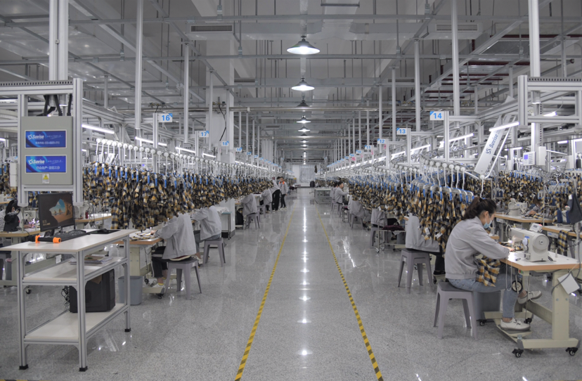 “制版、裁剪、車縫……各道工序上的工人,正專注地忙碌著。”