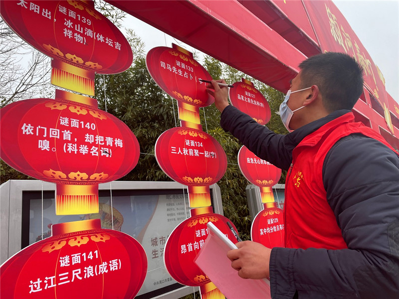 “阿姨您好!148號燈謎的謎底是‘香皂’。”2月15日,在周口市文化藝術(shù)中心西廣場,正在舉行“潁河春燈——元宵燈謎猜猜猜”活動?!拔易钕矚g猜燈謎了,猜對以后我還能拿到一個玩具小飛機(jī),真開心!”說話的這個小男孩姓汪,今年8歲,在今天這場猜燈謎活動中,他是第一位給出正確答案的參與者。