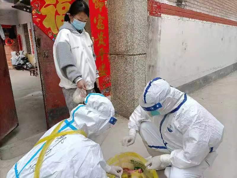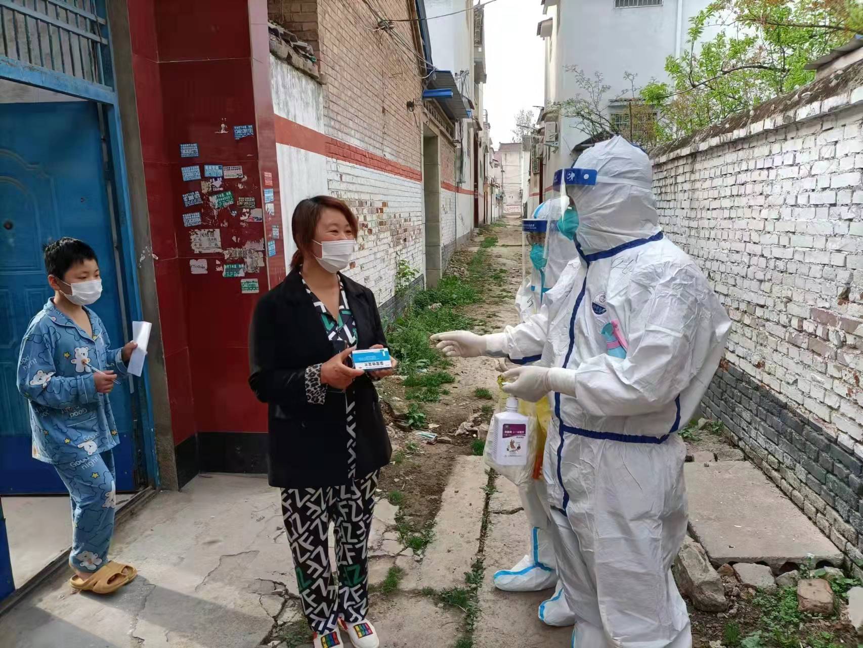 到達太康后,王群禮被分到了城關回族鎮(zhèn)封控區(qū)進行入戶核酸采集,當時的他也很緊張,認真地穿防護服,熟記采集核酸的每一個動作要領,然后投身抗疫最前線。在入戶采樣的時候,王群禮發(fā)現(xiàn)有一個小女孩獨自在家,她每次聽到敲門聲都是先開一點縫,悄悄觀察外面,當看到是防疫人員時,才慢慢打開門?!拔铱梢钥闯鏊目謶趾蜔o助,不知道她晚上怕不怕,會不會做飯,問她怎么吃飯,她也不說話,我心里很不是滋味?!睆哪翘扉_始,王群禮每次入戶采核酸的時候,就幫她帶點吃的,王群禮會把他的早餐留給她,還把自己的水果、零食也都送給她。