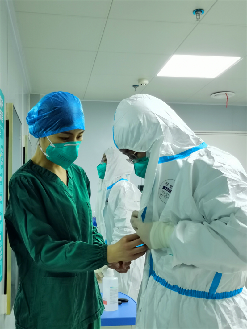 在岐伯山醫(yī)院,劉琦的主要工作職責是對病區(qū)工作人員全流程監(jiān)督、指導各區(qū)域工作人員防護用品的正確使用,確保醫(yī)務人員的安全,同時,對醫(yī)務人員工作全過程各項制度落實進行督導,指導并開展醫(yī)院感染各項監(jiān)測工作,應急處理各類突發(fā)事件,對存在問題查找原因,保障各項感控措施落實到位。