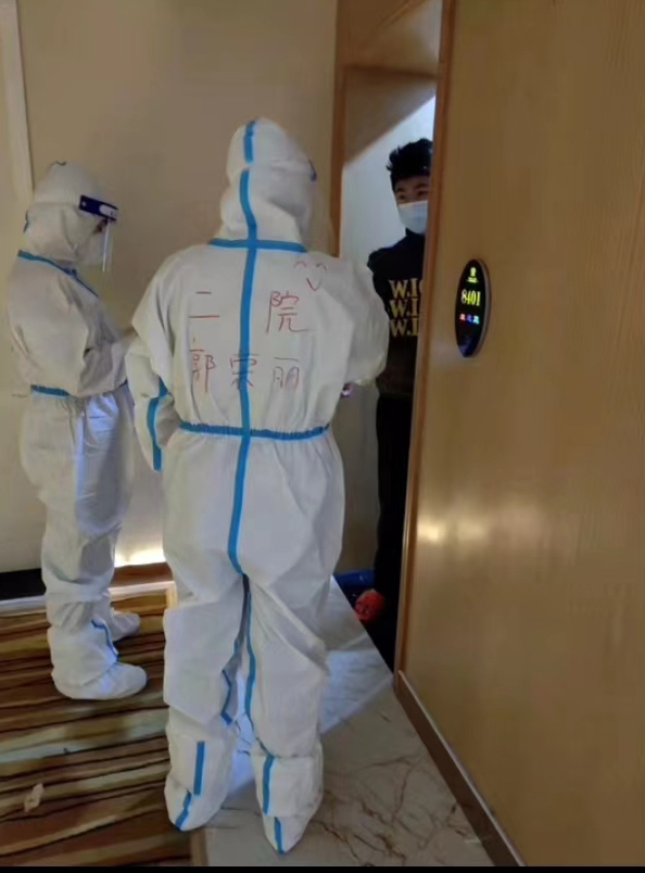 2022年1月太康縣出現(xiàn)確診病例密切接觸者,根據(jù)防控要求,這次需要隔離的人員多為太康第三中學(xué)的學(xué)生,接到通知后的郭榮麗再次投入工作。她看到被隔離的孩子在緊張、恐懼的情緒中還在學(xué)習(xí),她既心痛又欣慰。郭榮麗的兒子和被隔離的孩子同歲,母親了解孩子,她每天都會和這些孩子聊天,了解孩子的心理狀況,解除孩子的恐懼心理,很快孩子們就和她熟悉起來。整個隔離期間,這些孩子有心里話也會告訴郭榮麗。觀察結(jié)束后,孩子們還給她和醫(yī)護(hù)團(tuán)隊寫了一封感謝信,信中說“我想看看您摘掉口罩后的樣子,我想那是天使的模樣”。