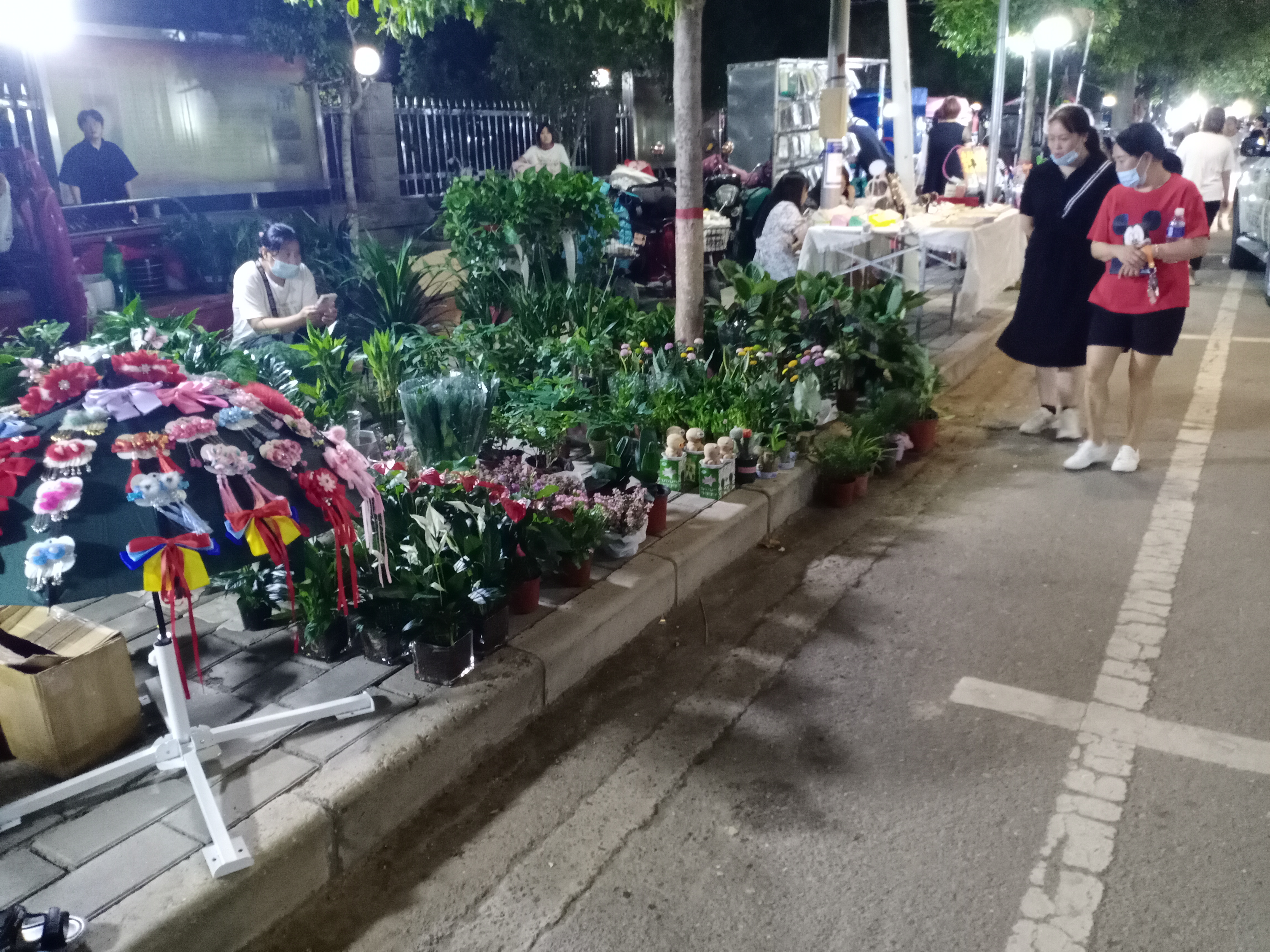 “我從今年開始在這里擺攤賣花卉,已經(jīng)有2個(gè)月左右的時(shí)間了,來這里買東西的市民很多,每天晚上能掙二三百元,生意還算可以?!痹诼愤厰[攤賣花卉的郭女士說,地?cái)偨?jīng)濟(jì)給他們帶來了實(shí)惠,不用交房租,人流量也大,收入很不錯(cuò)。