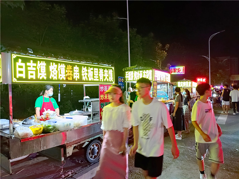 疫情散去,終歸風(fēng)平浪靜。城市夜晚被賦予更斑斕的色彩、更旺盛的生命力,夜消費(fèi)、夜休閑、夜文化在鹿邑市民生活中不可或缺。為進(jìn)一步促進(jìn)“夜經(jīng)濟(jì)”健康發(fā)展,鹿邑縣商務(wù)局、市場(chǎng)監(jiān)管局、城市管理局等有關(guān)部門審慎包容、精準(zhǔn)施策,堅(jiān)持管理和服務(wù)并重,因地制宜,完善城市便民疏導(dǎo)點(diǎn)經(jīng)營(yíng)秩序,建立臨街餐飲店、夜市小吃外擺準(zhǔn)入機(jī)制。該縣城區(qū)原有8個(gè)便民疏導(dǎo)點(diǎn),經(jīng)過實(shí)地調(diào)查論證,有關(guān)部門又將新近自然形成的3個(gè)商販聚集地設(shè)立為便民疏導(dǎo)點(diǎn)。同時(shí),以個(gè)人申請(qǐng)、實(shí)地調(diào)查的方式對(duì)沿街門店外擺經(jīng)營(yíng)進(jìn)行放開。