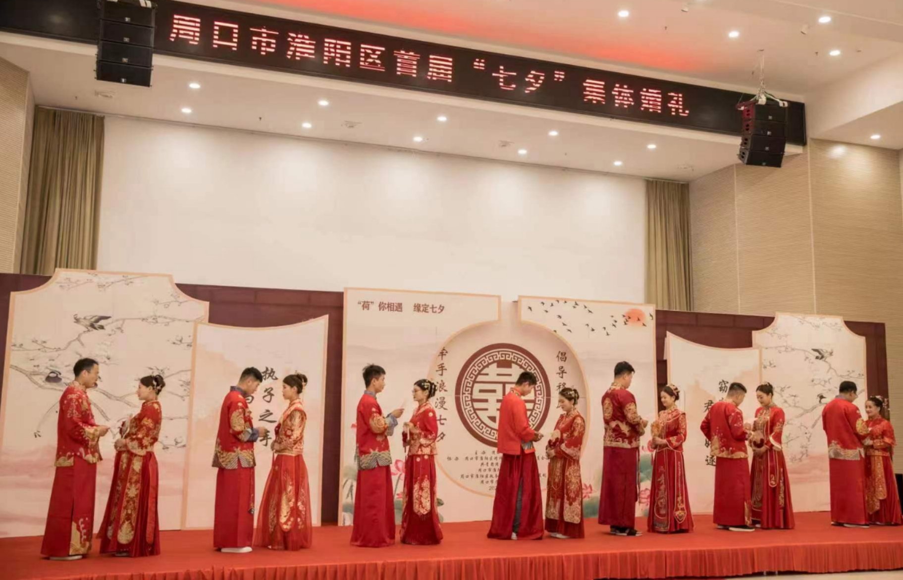 8月4日上午,淮陽區(qū)首屆“‘荷’你相遇·緣定七夕”集體婚禮在淮陽區(qū)市民中心舉行。這次集體婚禮由區(qū)民政局主辦,區(qū)委宣傳部、區(qū)文明辦、區(qū)總工會、團(tuán)區(qū)委、區(qū)婦聯(lián)和區(qū)大數(shù)據(jù)中心聯(lián)合協(xié)辦。