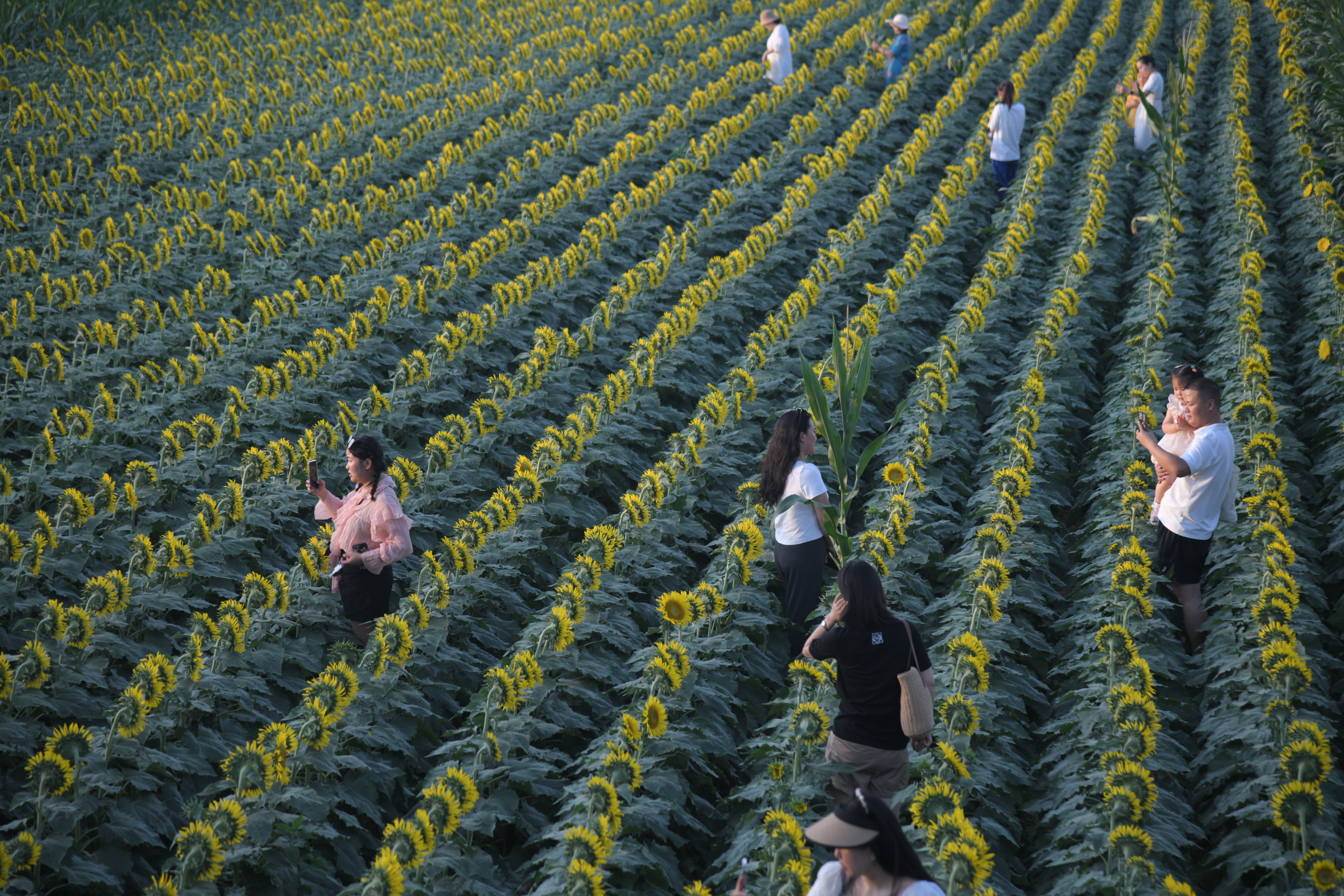 近年來,我市以創(chuàng)建全國文明城市為引領(lǐng),加快推進(jìn)沙潁河生態(tài)經(jīng)濟(jì)帶全域文旅項目建設(shè),提升沿河綠化景觀效果,給市民增加游玩好去處。圖為昨日市民在沙潁河南岸武盛大道東側(cè)的千畝向日葵花海游玩。記者付永奇攝 ②15