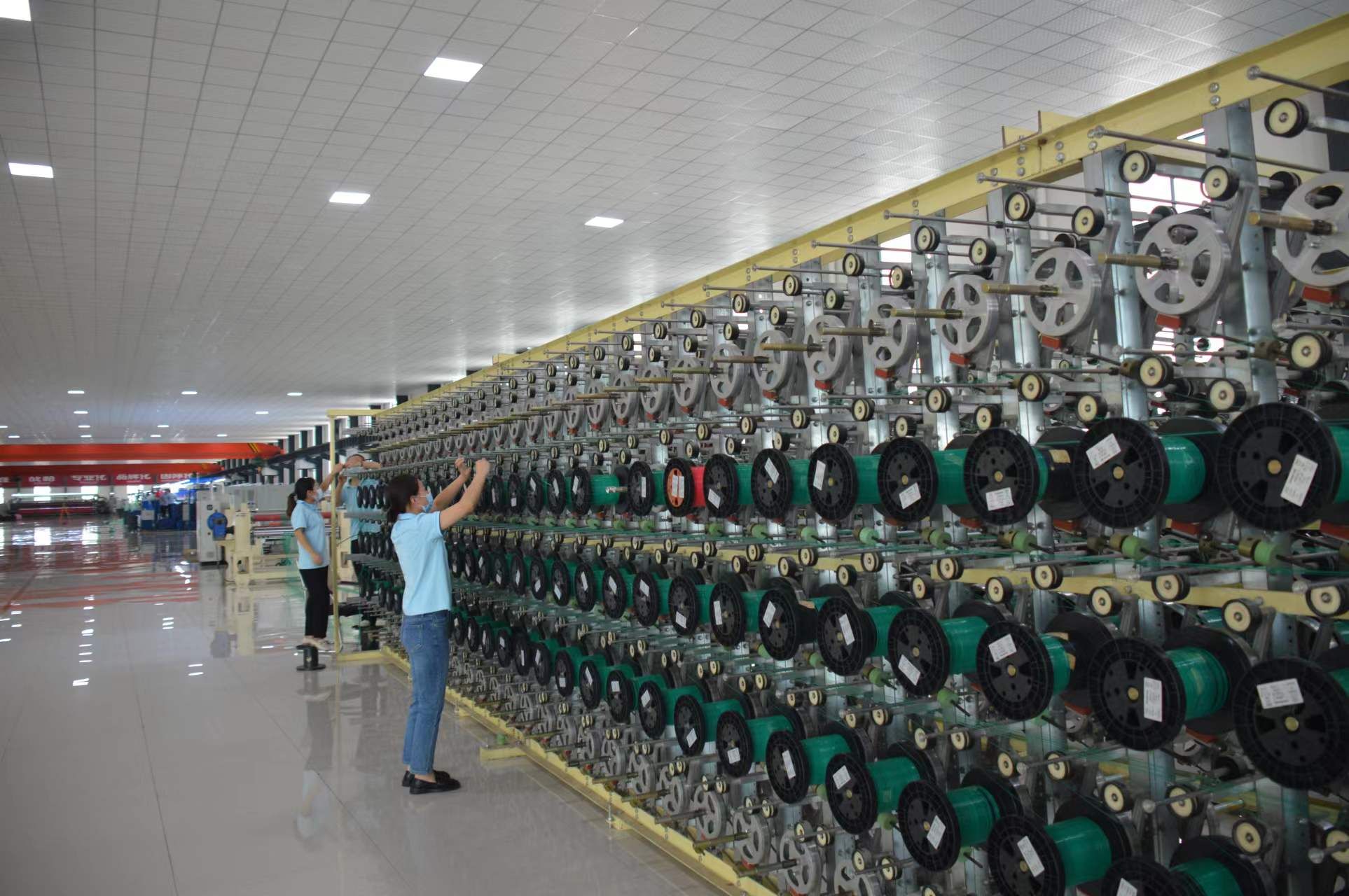 在經(jīng)濟(jì)開(kāi)發(fā)區(qū)晶鑫科技生產(chǎn)車(chē)間,只見(jiàn)高大寬敞的車(chē)間內(nèi),工人們?cè)诟髯詬徫簧嫌袟l不紊地忙碌著。拉絲車(chē)間里,一臺(tái)大型編織機(jī)械運(yùn)轉(zhuǎn)著,一名技術(shù)人員在操控臺(tái)上注視著屏幕?!斑@是剛引進(jìn)的國(guó)外設(shè)備,生產(chǎn)效率很高。”車(chē)間負(fù)責(zé)人介紹說(shuō)。在編織車(chē)間,工作人員馬杰通過(guò)顯示屏正在熟練地操作著一臺(tái)編織機(jī)?!斑@臺(tái)機(jī)器比人工效率要高出好多倍?!彼龑?duì)自己能操作一臺(tái)技術(shù)要求很高的自動(dòng)化生產(chǎn)設(shè)備感到特別自豪。“我們生產(chǎn)的聚酯網(wǎng)產(chǎn)品在市場(chǎng)上供不應(yīng)求?!避?chē)間負(fù)責(zé)人說(shuō)。