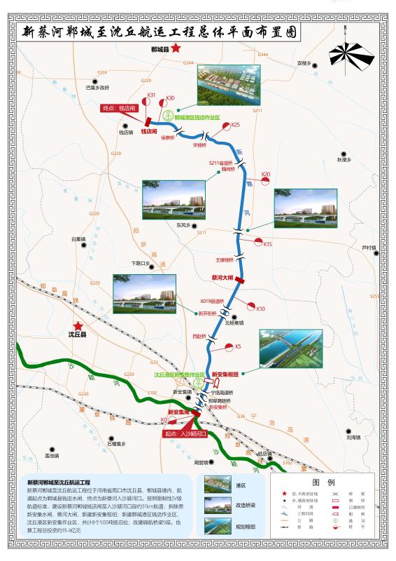 記者了解到,規(guī)劃中的鄲城港區(qū)是以新蔡河為依托,通過(guò)分析論證,確定其位置在新蔡河航運(yùn)工程航道起點(diǎn)鄲城縣錢店鎮(zhèn),航道終點(diǎn)為沈丘縣新安集沙潁河口,航道里程31公里。航道通航標(biāo)準(zhǔn)為限制性Ⅳ級(jí),設(shè)計(jì)船舶為500噸級(jí)。航道底寬40米,最小設(shè)計(jì)水深3.1米,最小彎曲半徑320米。船閘按照Ⅳ級(jí)船閘標(biāo)準(zhǔn)建設(shè)。沿線建設(shè)沈丘港區(qū)新安集、鄲城港區(qū)錢店兩個(gè)作業(yè)區(qū),設(shè)計(jì)500噸級(jí)泊位8個(gè),改建礙航橋梁標(biāo)準(zhǔn)9座。初步估算,工程總投資19.4億元。