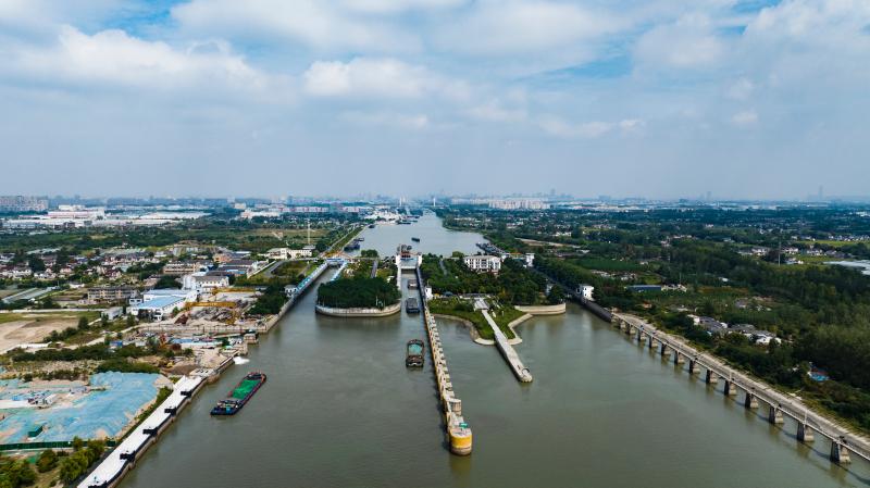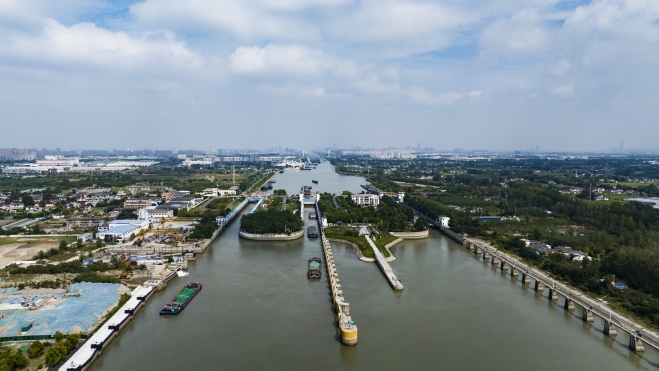 9月27日上午,豫貨出海、“周”向世界——周口航運(yùn)出海大型異地采訪活動(dòng)采訪組B組來到位于揚(yáng)州市長江北岸的施橋船閘。古鎮(zhèn)施橋,長江與大運(yùn)河在這里交匯,施橋船閘就位于這個(gè)交匯點(diǎn)上。