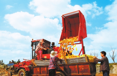 聊起機(jī)械收獲玉米的好處,付井鎮(zhèn)王寨村黨支部書記王運(yùn)啟眉飛色舞?!坝衩讬C(jī)械化收割,一次能完成玉米莖稈切割、摘穗、剝皮、集穗、秸稈粉碎等多項(xiàng)作業(yè),秸稈打碎還田,既保護(hù)環(huán)境,又給土地增了肥,增加了村民的種植效益?!?/p>