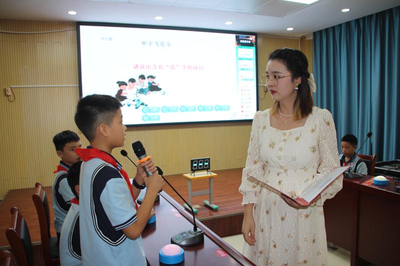 本次詩詞大會共四場初賽和總決賽。比賽包括“詩詞接龍”“飛花令”“看圖猜古詩”“九宮格連詩句”“古詩詞常識”等豐富多彩、靈活多樣的題目,答題過程不但考查學(xué)生的詩詞儲備量,還考驗(yàn)學(xué)生關(guān)于古詩詞常識的了解程度以及臨場快速反應(yīng)的能力。賽場上18名選手對答如流、思維敏捷、妙語連珠,盡管高手云集、競爭激烈,但選手們“談笑間,檣櫓灰飛煙滅”的泰然自若神態(tài),贏得了觀眾的陣陣掌聲。比賽現(xiàn)場氣氛熱烈、扣人心弦、掌聲不斷。