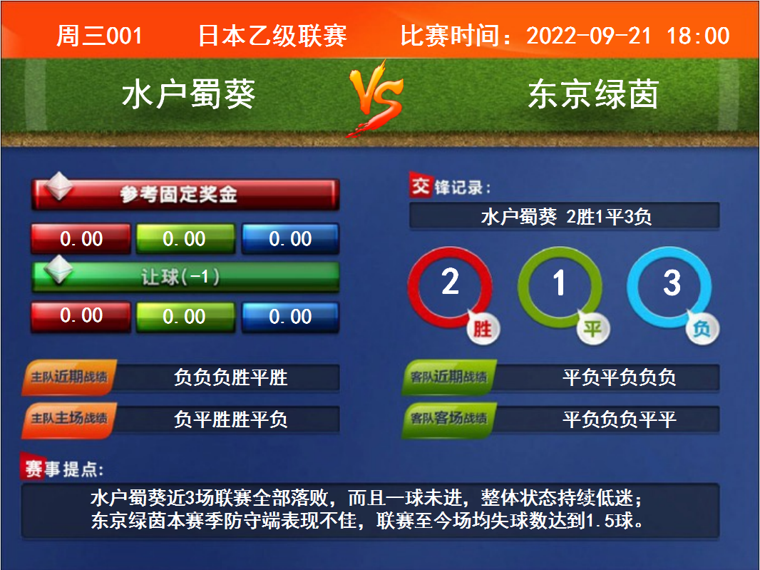 周三001 日本乙級(jí)聯(lián)賽 水戶蜀葵VS東京綠茵