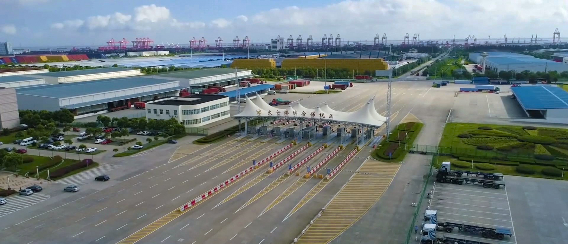 “我們也成功帶動了后方的產(chǎn)業(yè)發(fā)展。”馬沛宇將記者一行引至辦公樓的另一側(cè),只見一排排占地巨大的廠房、一輛輛重載卡車、一座座氣派的辦公樓構(gòu)筑起了港區(qū)忙碌的景象。在太倉港航運優(yōu)勢的帶動下,造紙業(yè)、板材、原木、中集箱廠、物流中轉(zhuǎn)倉庫等等隨之而來,這都是太倉港區(qū)發(fā)展的碩果。