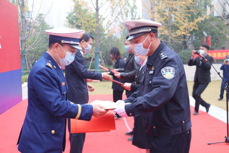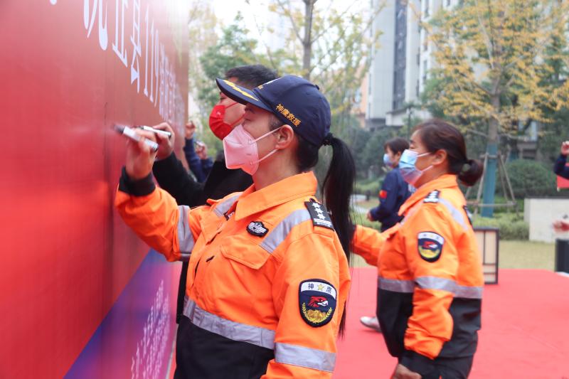 啟動(dòng)儀式上,社區(qū)居民、民間救援人員等在宣傳墻上簽字,沈丘縣相關(guān)領(lǐng)導(dǎo)還為消防大隊(duì)聘任的4名消防宣傳形象大使頒發(fā)了聘任證書。