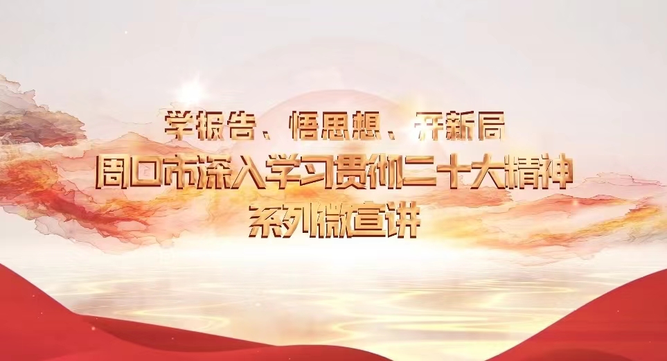 為深入學(xué)習(xí)貫徹黨的二十大精神,中共周口市委宣傳部、中共周口市委黨校和周口報業(yè)傳媒集團共同制作“學(xué)報告 悟思想 開新局”系列宣講微視頻,將分專題陸續(xù)推出。
