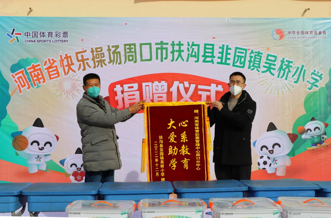 此次捐贈(zèng)的體育器材有籃球、足球、排球、乒乓球拍、羽毛球拍等價(jià)值近2萬元的體育用品。為表達(dá)謝意,吳橋小學(xué)向周口體彩分中心贈(zèng)送了“心系教育,大愛助學(xué)”的錦旗。