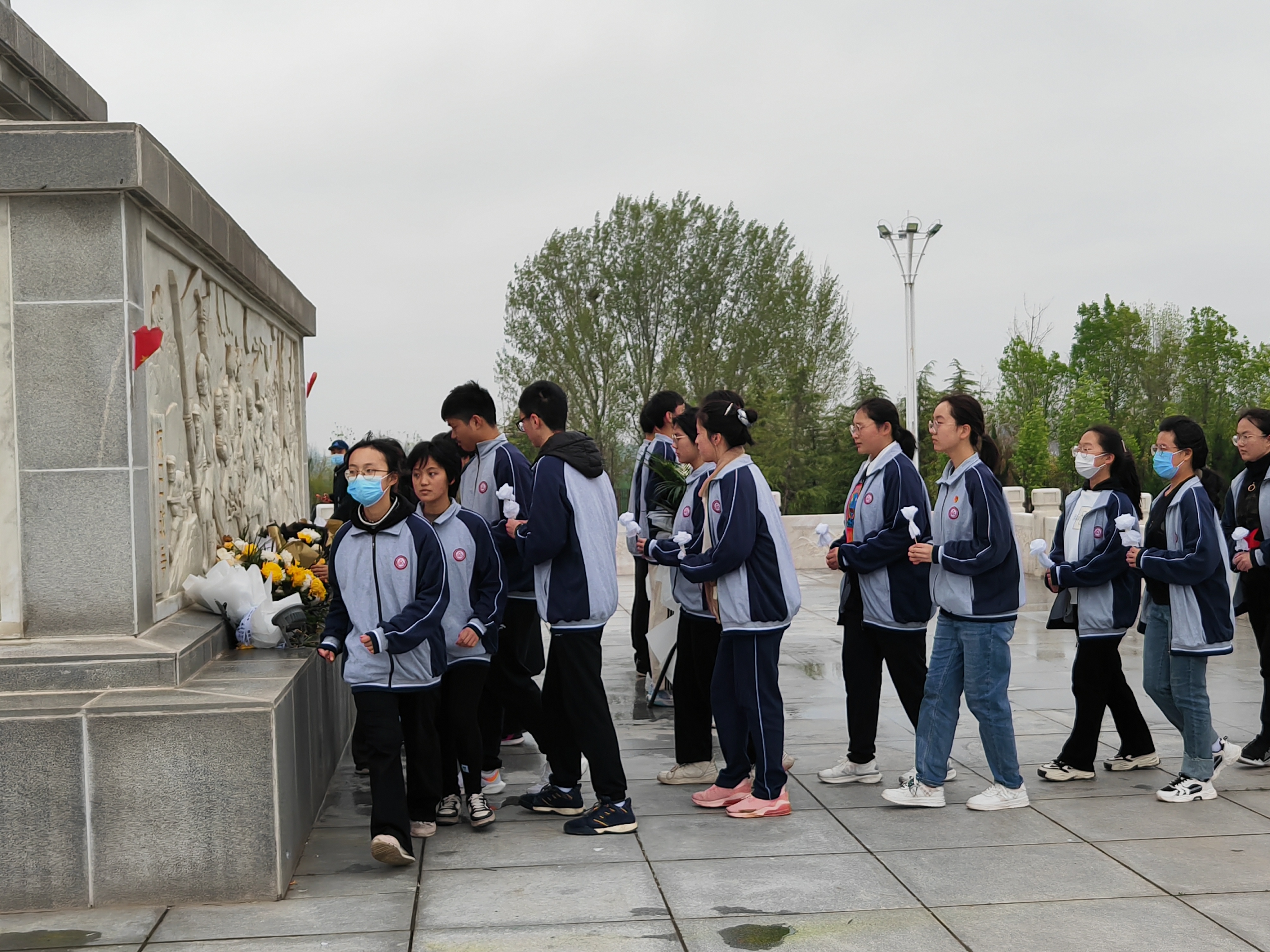 清晨6點30分,料峭冷風中,周口一高高二年級1400多名師生在校領(lǐng)導(dǎo)的帶領(lǐng)下,冒著細雨步行前往十多公里外的周口市烈士陵園開展清明祭掃活動。