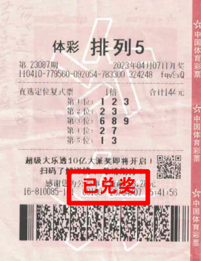 中獎當(dāng)天,購彩者和往常一樣來到店里,對著店內(nèi)的歷史開獎號碼研究了一會兒,果斷選擇了定位復(fù)式進(jìn)行投注。據(jù)悉,中獎?wù)邚埾壬ɑ┒嗄陙眇B(yǎng)成購買體育彩票小盤玩法排列型游戲的習(xí)慣,積累了豐富的購彩經(jīng)驗,對該玩法有自己獨到的分析方法和見解,善于利用定位復(fù)式進(jìn)行購買,購彩多年,體育彩票排列型玩法給他帶來了多次中獎驚喜和美好的購彩體驗。23087期,在經(jīng)過自己的仔細(xì)分析和判斷后,張先生第一位選定123,第二位選定23,第三位選定689,第四位選定27,第五位選定13,組合成為一張144元的排列5定位復(fù)式票,巧妙運用自己獨特的選號技巧,幸運命中當(dāng)期排列5一等獎。