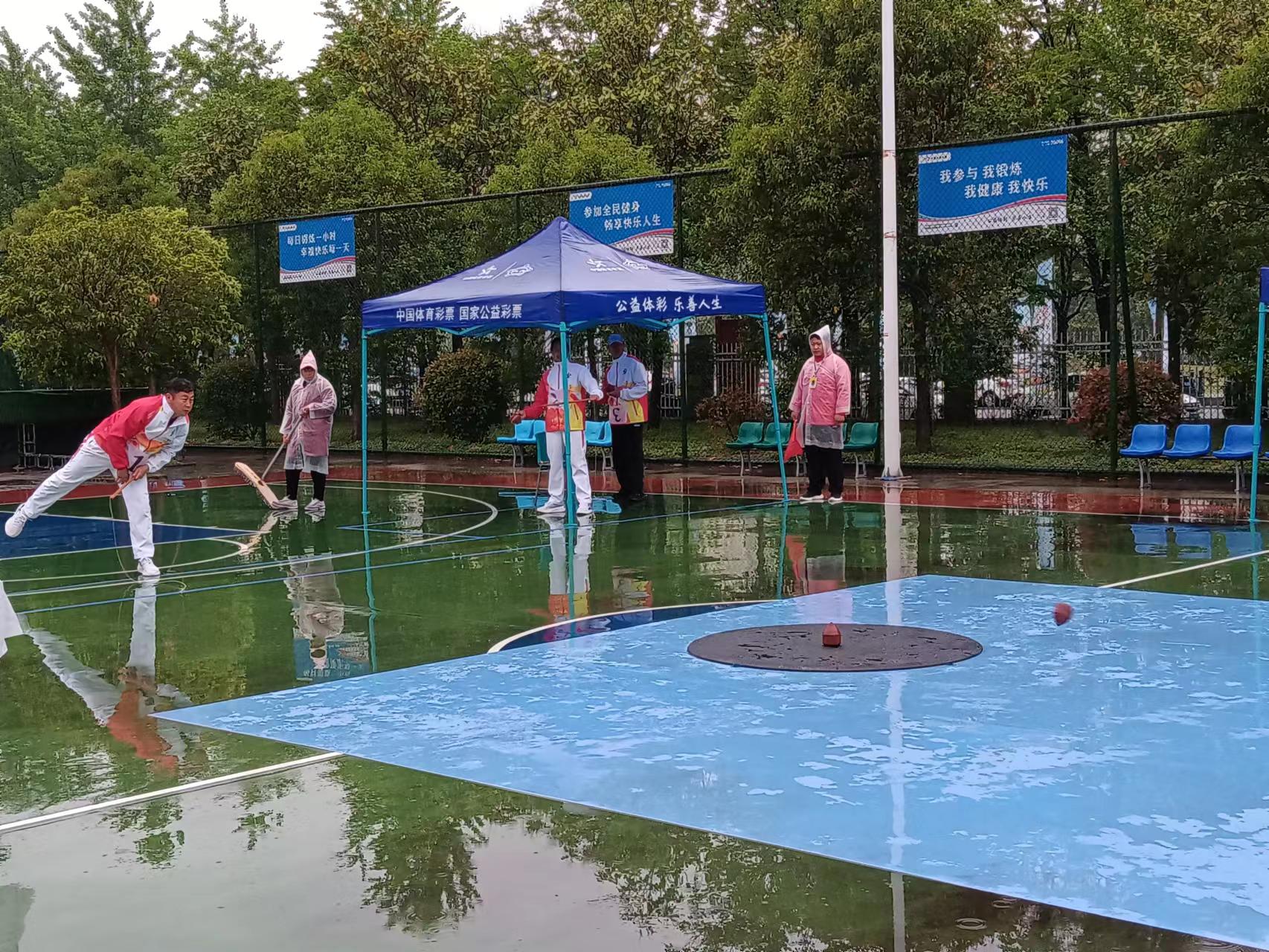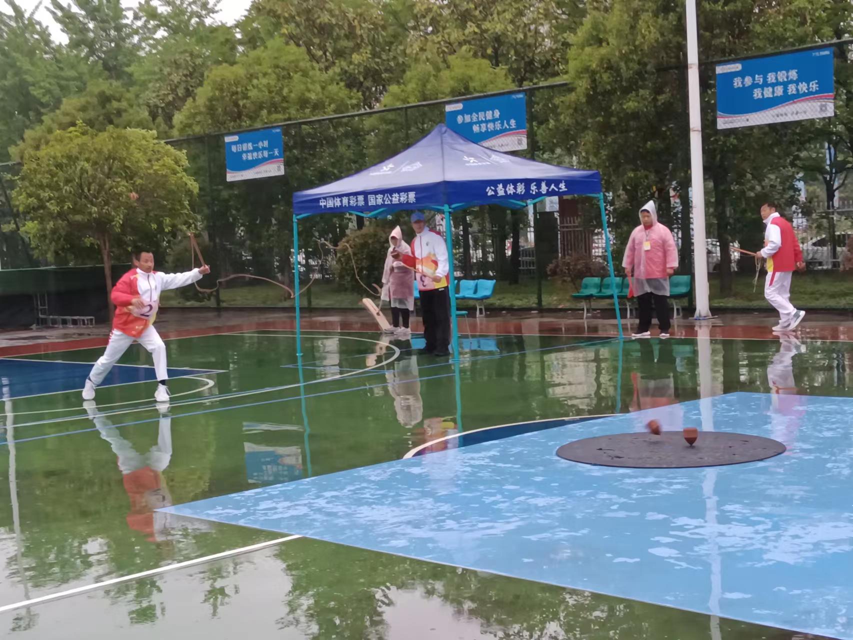 4月23日,在細雨蒙蒙中,河南省第九屆少數民族傳統體育運動會陀螺項目在市體育中心籃球場拉開比賽帷幕。