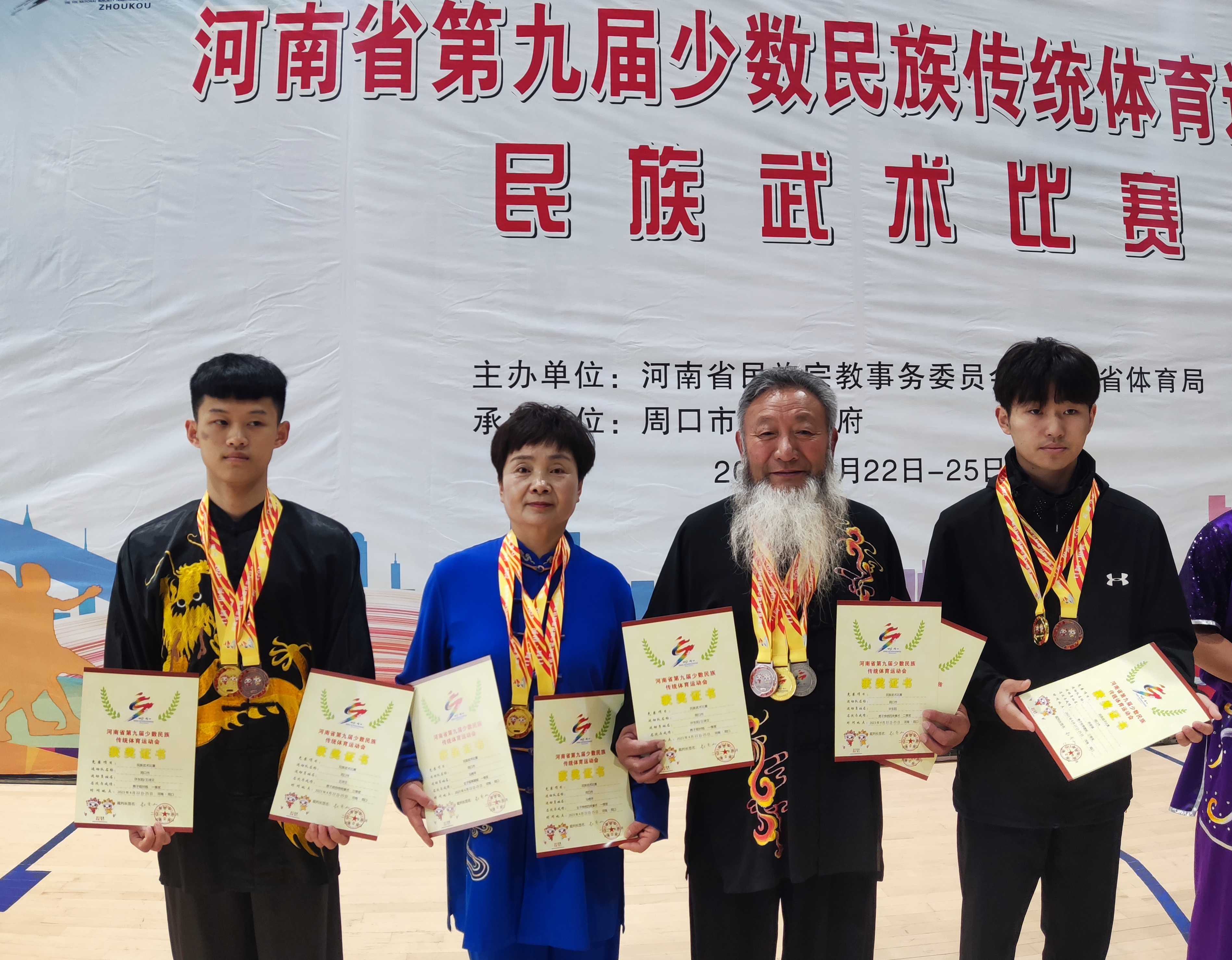 據(jù)悉,在本屆民族運(yùn)動(dòng)會(huì)民族武術(shù)項(xiàng)目中,產(chǎn)生13項(xiàng)金牌,24項(xiàng)銀牌,29項(xiàng)銅牌。周口隊(duì)收獲4項(xiàng)金牌、1項(xiàng)銀牌、3項(xiàng)銅牌,取得歷史最好成績(jī)。其中,蘇俊瑞獲得男子傳統(tǒng)一類拳術(shù)金牌,馬艷平獲得女子傳統(tǒng)四類拳術(shù)金牌、女子組單器械金牌,許東陽(yáng)、王詩(shī)文獲得男子組對(duì)練金牌。許東陽(yáng)還獲得男子傳統(tǒng)四類拳術(shù)銀牌、男子組單器械銅牌。王詩(shī)文獲得男子其他類拳術(shù)銅牌。蘇俊瑞獲男子組單器械銅牌。②2
