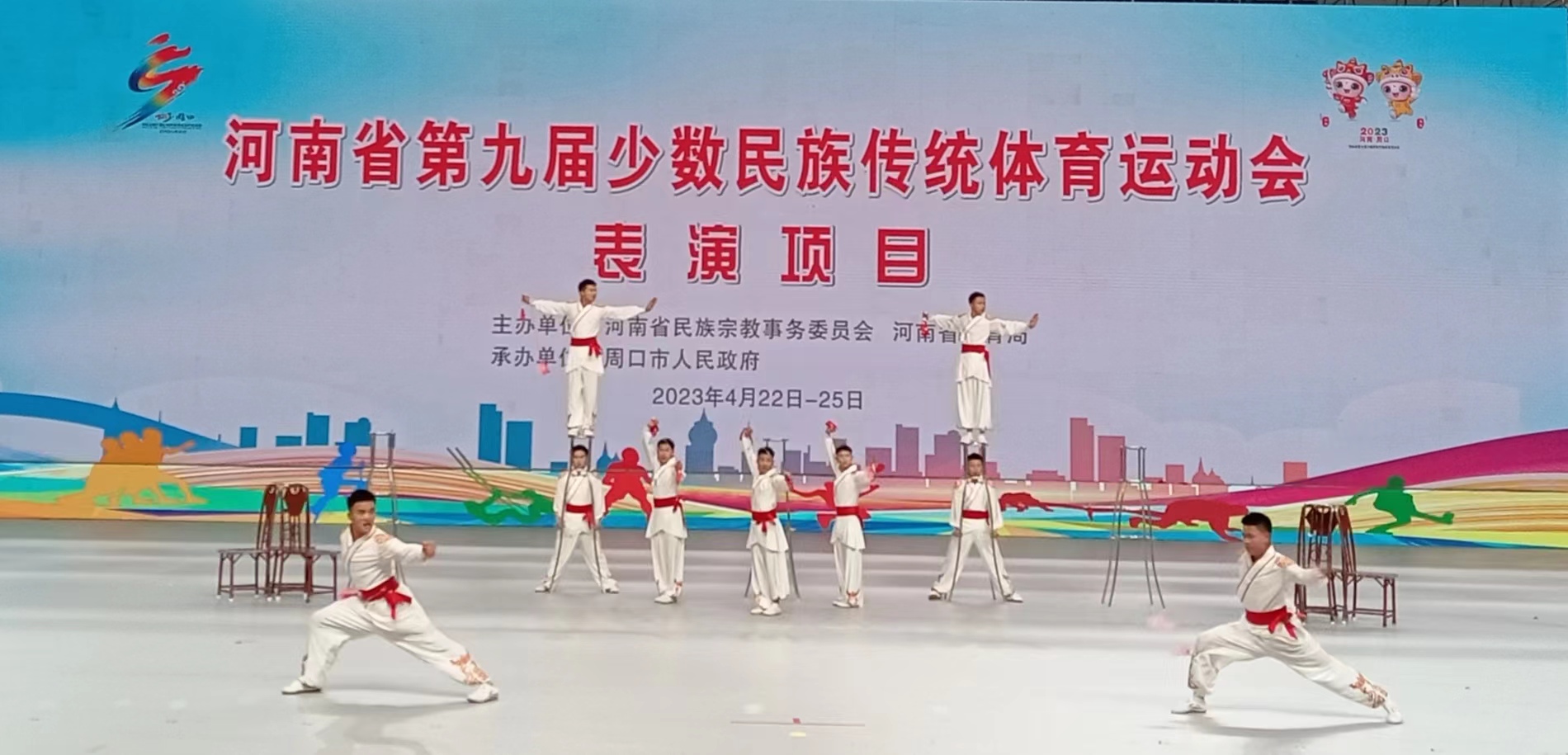友誼第一,比賽第二。4月24日下午,河南省第九屆少數(shù)民族傳統(tǒng)體育運(yùn)動會表演項(xiàng)目比賽在周口市體育館完美收官。本屆運(yùn)動會共有14個(gè)表演項(xiàng)目獲一等獎。