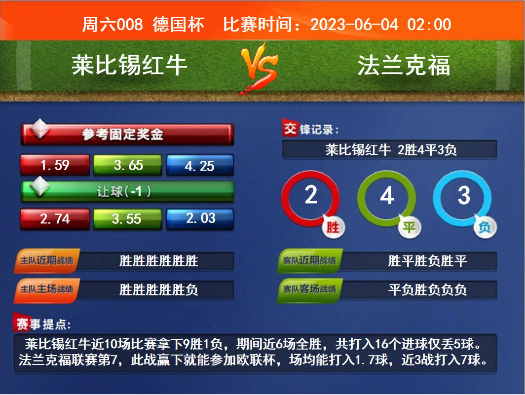 周六008 德國(guó)杯萊比錫紅牛VS法蘭克福