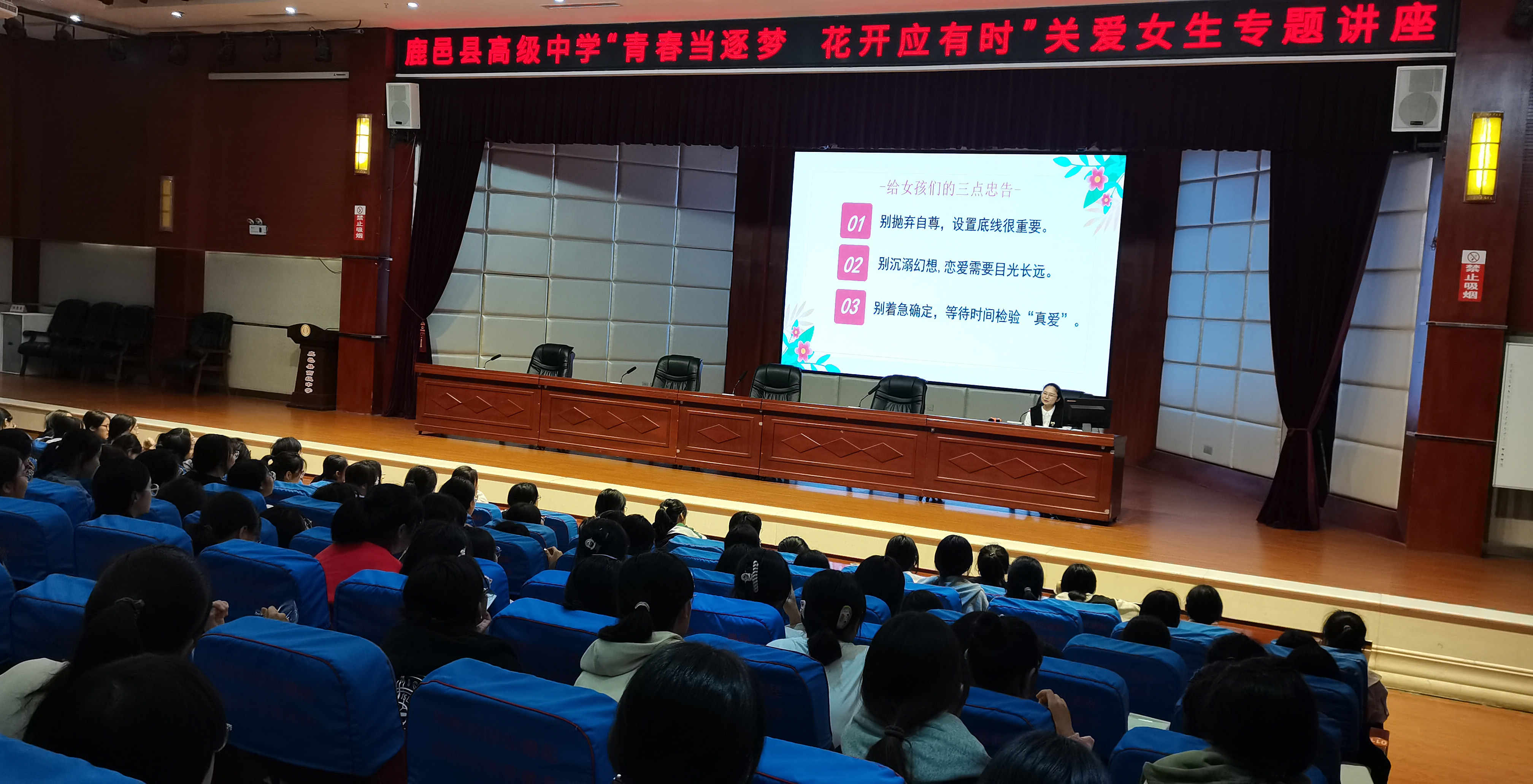 9月26日、27日晚,鹿邑縣高級(jí)中學(xué)舉行兩場以“青春當(dāng)逐夢(mèng),花開應(yīng)有時(shí)”為主題的關(guān)愛女生專題講座。講座進(jìn)一步推動(dòng)學(xué)校心理健康教育工作,幫助學(xué)生提高心理健康水平,引導(dǎo)女生正確認(rèn)識(shí)青春期心理及生理上的變化,樹立積極向上的人生觀。此次專題講座由學(xué)校婦委會(huì)主任夏寧主持。